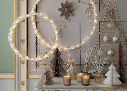 Illuminate your home with luminous objects, ceramic decorations, tree-shaped candles, and woody fragrances. Harmonize lights and scents for a magical atmosphere!