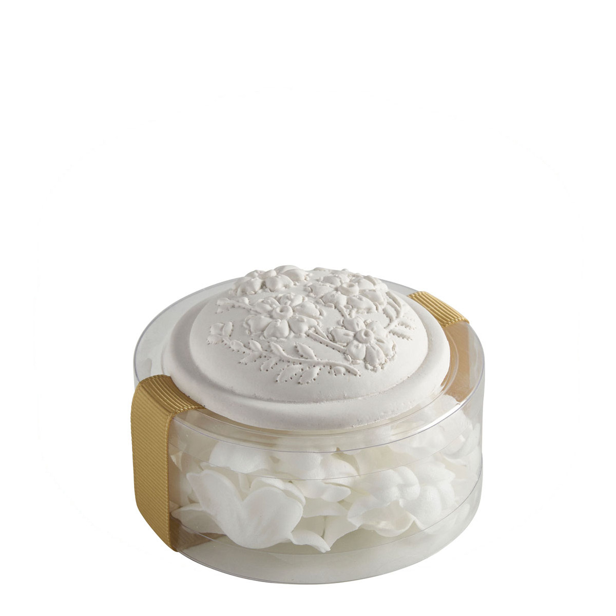 Indulge in this lovely box containing white soap flowers and discover a whole new way to wash your hands. Refined and elegant, the soap petals transform into a pleasant foam when in contact with water, leaving your hands delicately scented with rose.