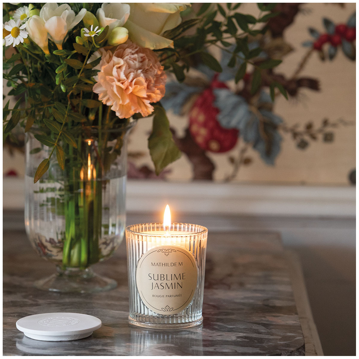 100% of our candles are hand-poured in our workshops. Each wick is cut and recentered by hand as well. Mathilde M candles are composed of a balanced and refined blend of vegetable soy wax and mineral wax.