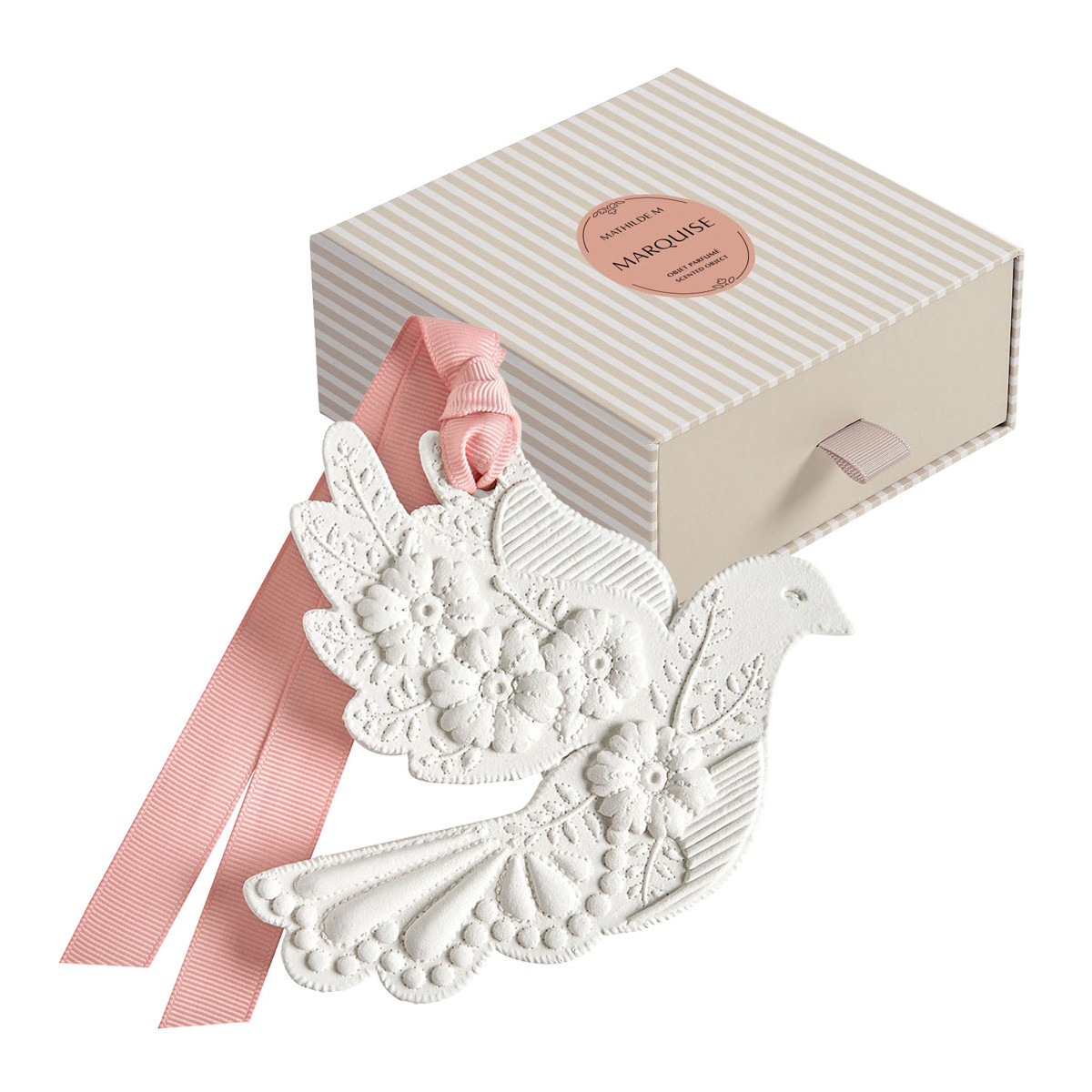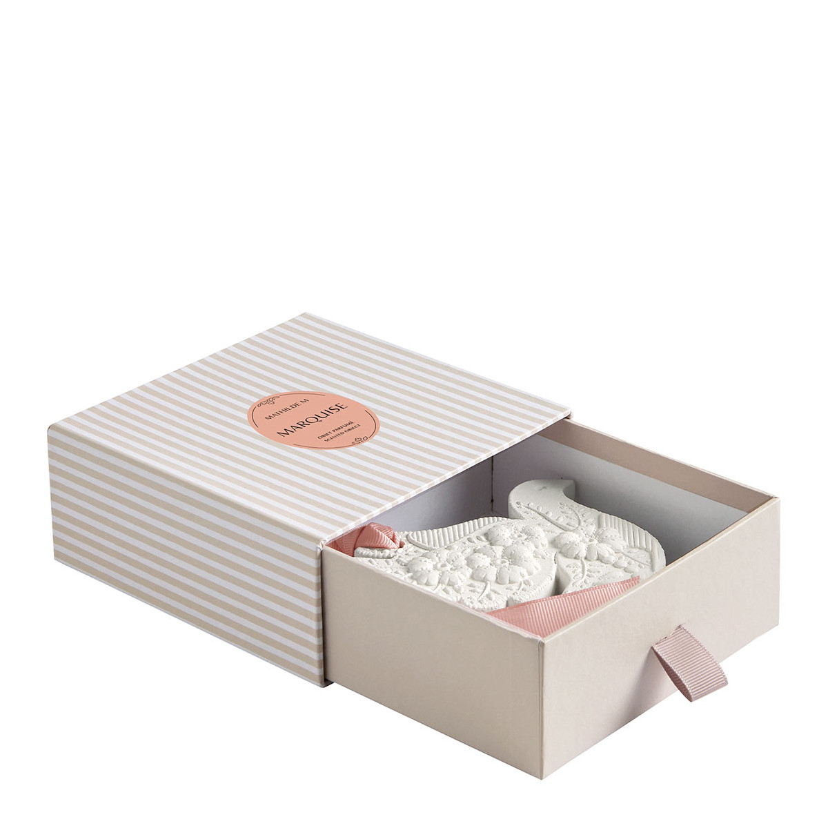Iconic to the brand, Mathilde M plaster décors are delicately scented and handcrafted in our workshops using artisanal methods by our ornamental sculptor.