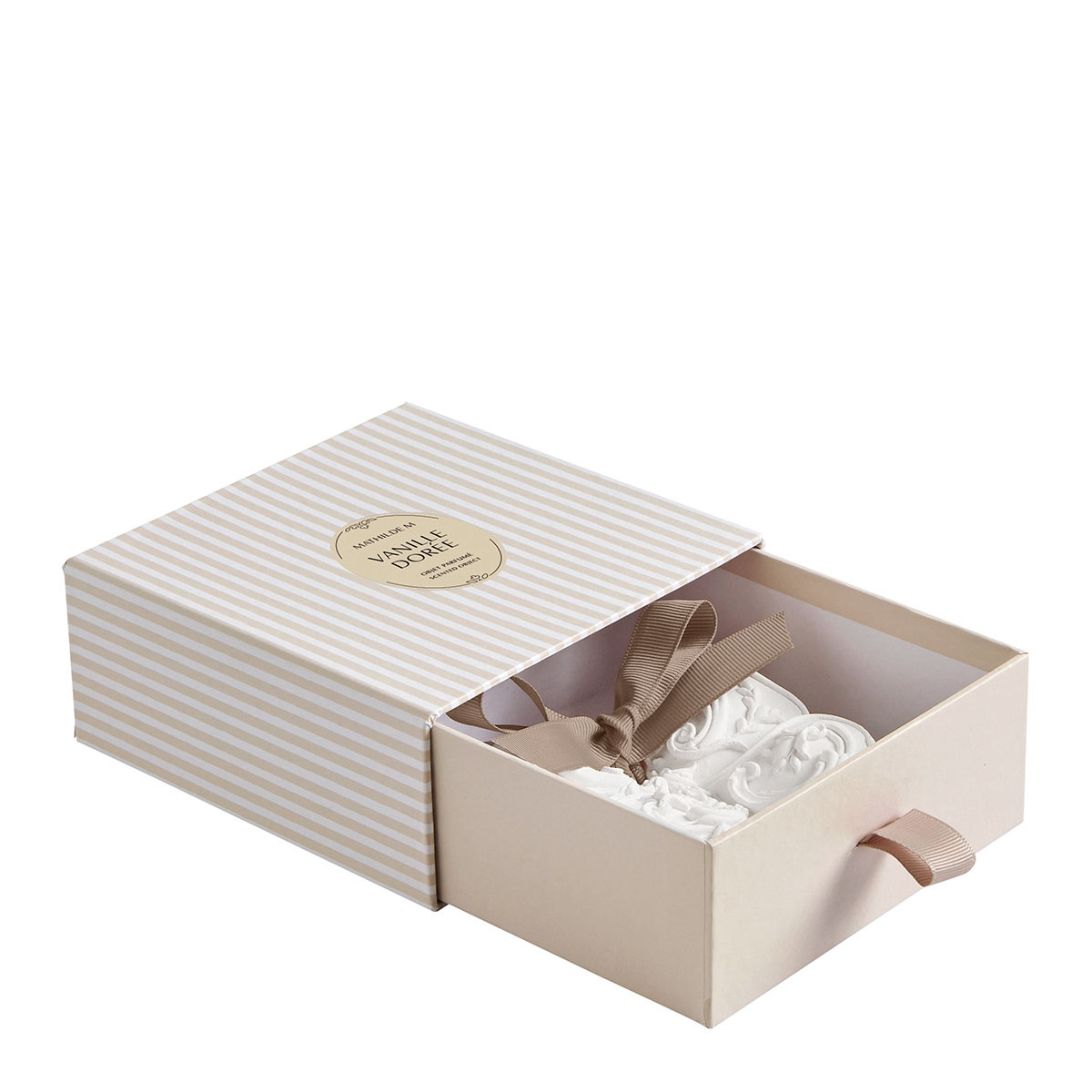 Iconic to the brand, Mathilde M plaster décors are delicately scented and handcrafted in our workshops using artisanal methods by our ornamental sculptor.