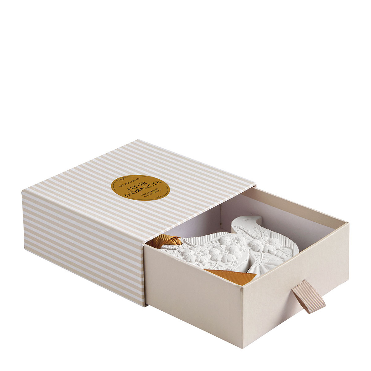 Iconic of the brand, Mathilde M plaster decorations are delicately scented and handcrafted in our workshops using artisanal methods by our ornamental sculptor.