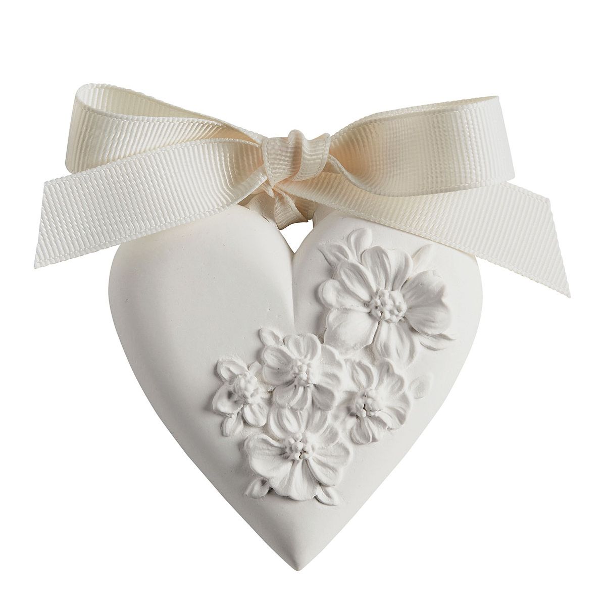 Entirely handmade, this heart-shaped plaster decoration, adorned with flowers in relief, will delicately and lastingly perfume all the small spaces in your home such as wardrobes, drawers or luggage.
