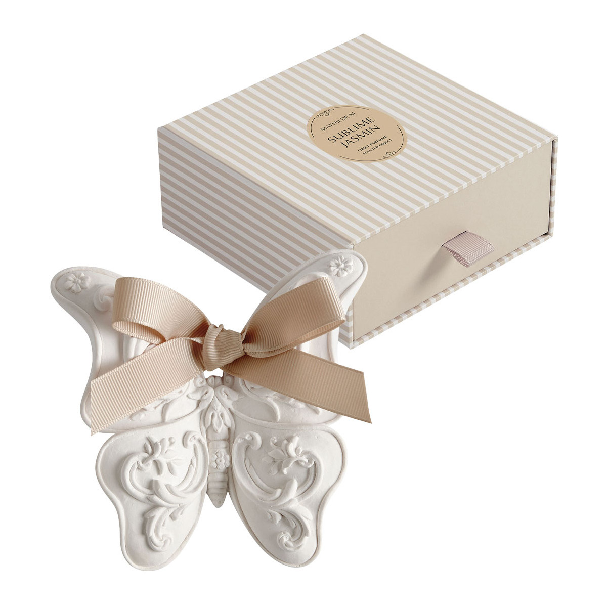 Iconic to the brand, Mathilde M plaster decorations are delicately scented and handcrafted in our workshops using artisanal methods by our ornamental sculptor.