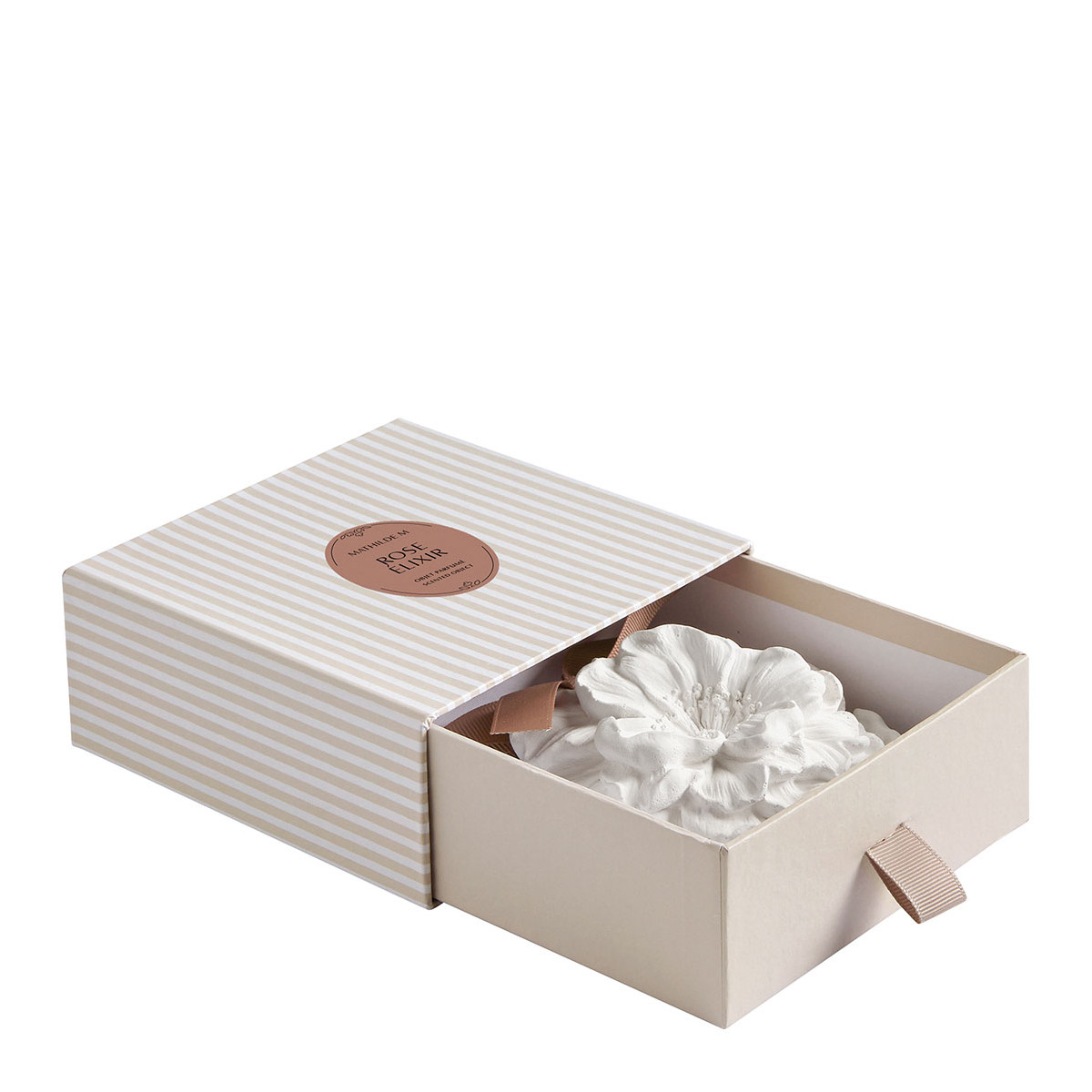 Iconic to the brand, Mathilde M plaster decorations are delicately scented and handcrafted in our workshops using artisanal methods by our ornamental sculptor.