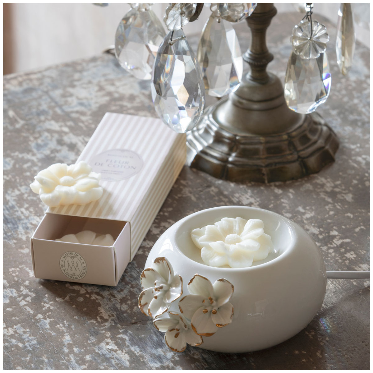 Each fragrant creation is imagined by our design team in France and made up of pieces with refined details, revisiting a typically French art de vivre.
