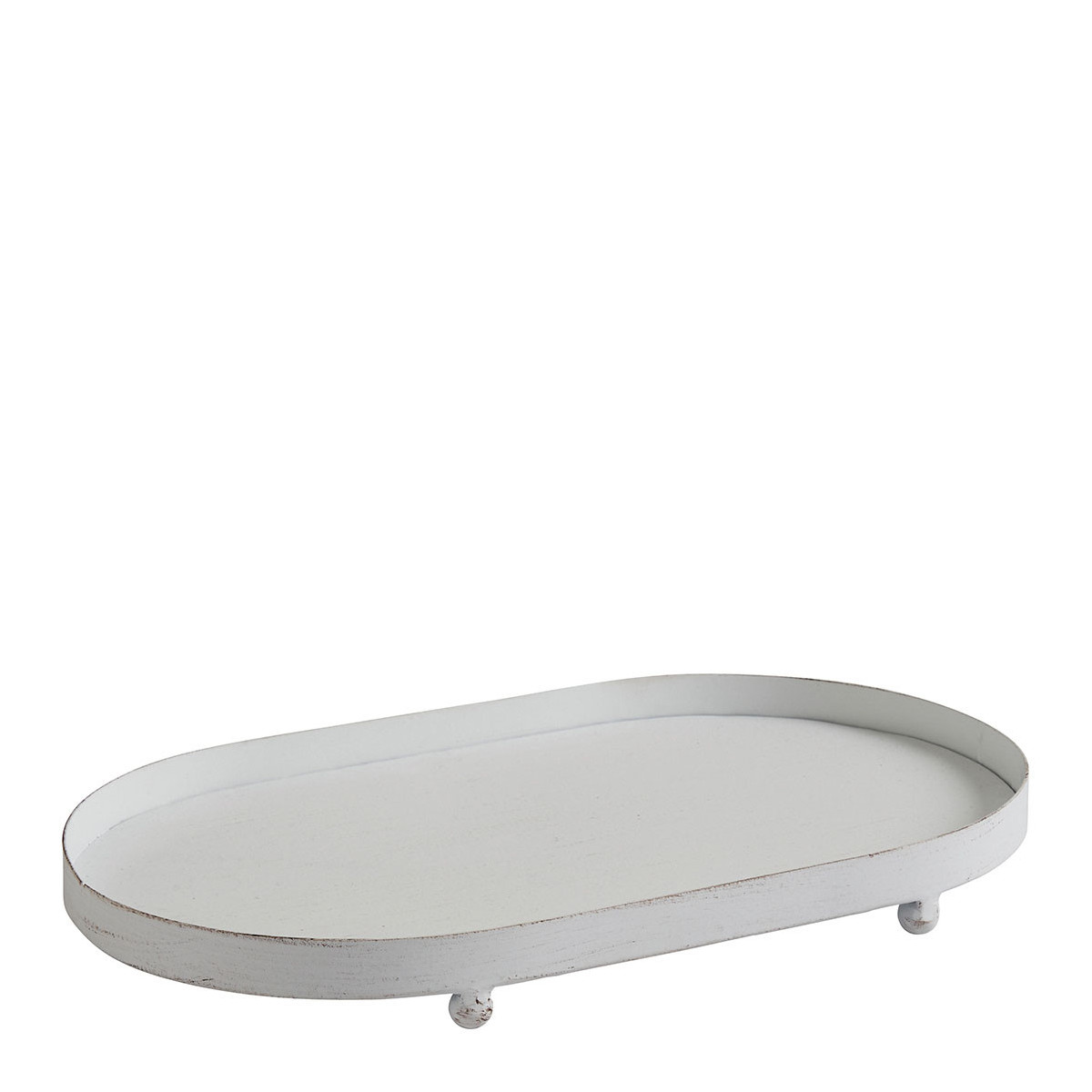 Bandeja ovalada de metal blanco - 25 x 15 x 2,5 cm