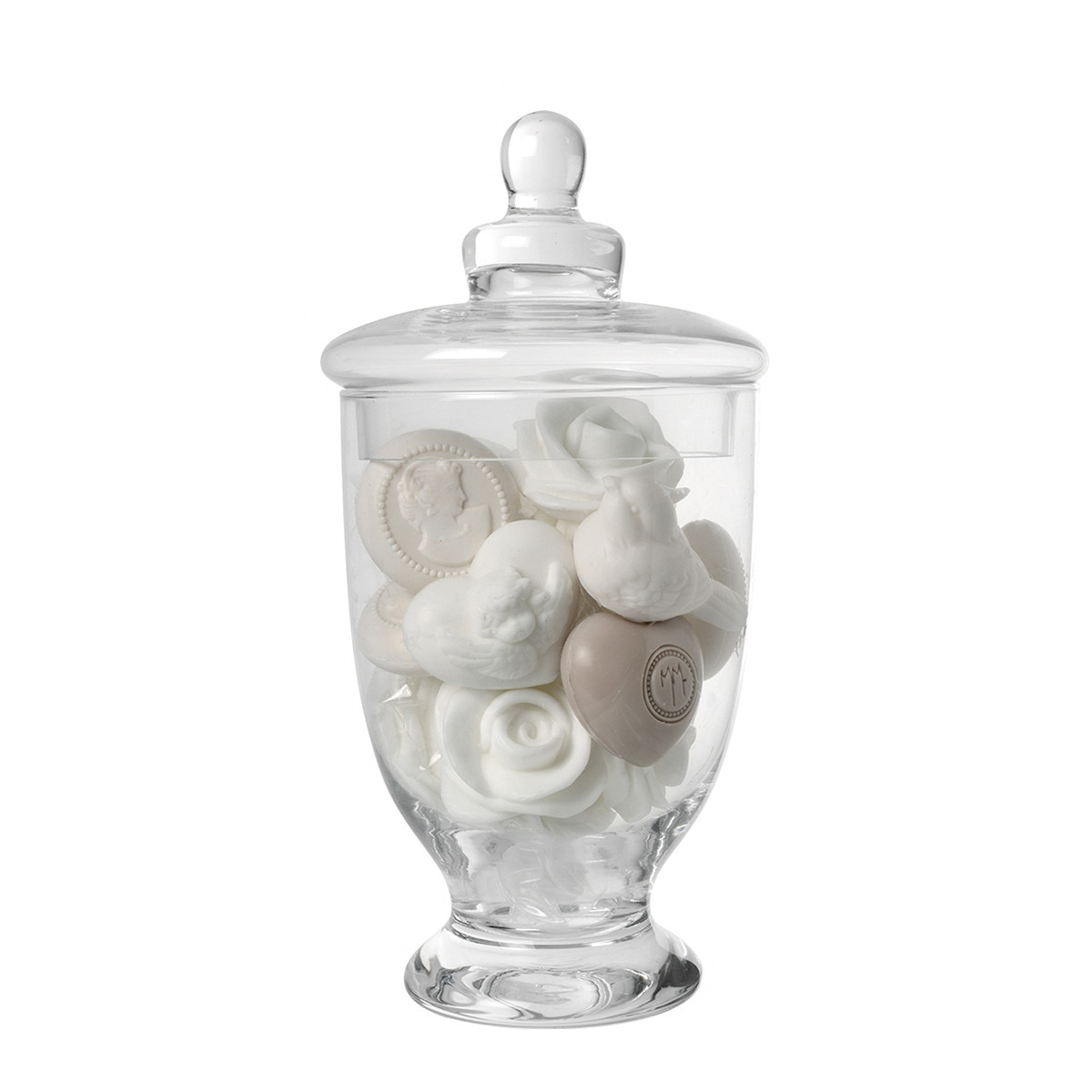 Esta bombonera es perfecta para guardar sus pequeñas golosinas o sus algodones en el baño.