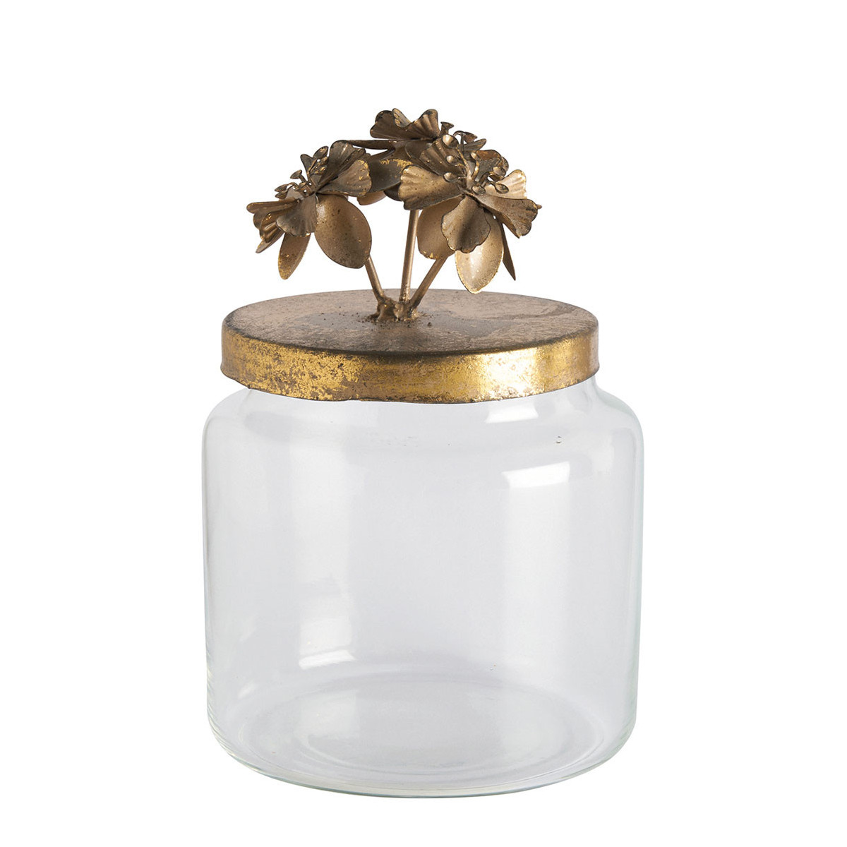 Bombonera Idilio Floral en vidrio y metal dorado - Modelo pequeño - ø 9,5 x 16 cm