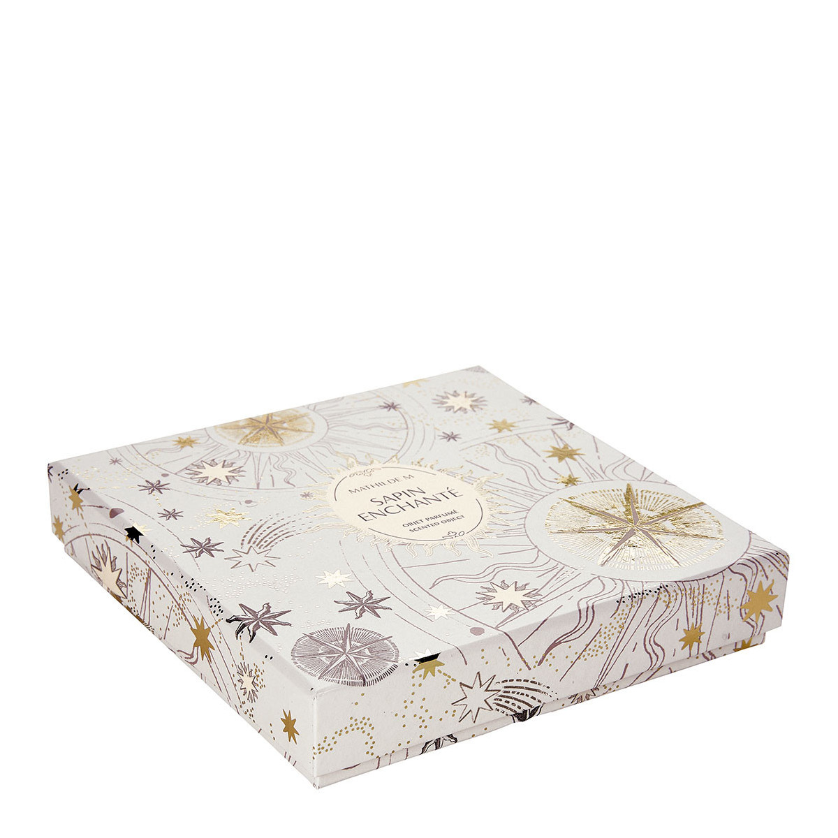 Déjese seducir por Sapin Enchanté, una fragancia amaderada que revela frescas notas de agujas de pino mezcladas con el calor especiado de la canela. El acorde goloso de sirope de arce y vainilla aporta una untuosa dulzura.