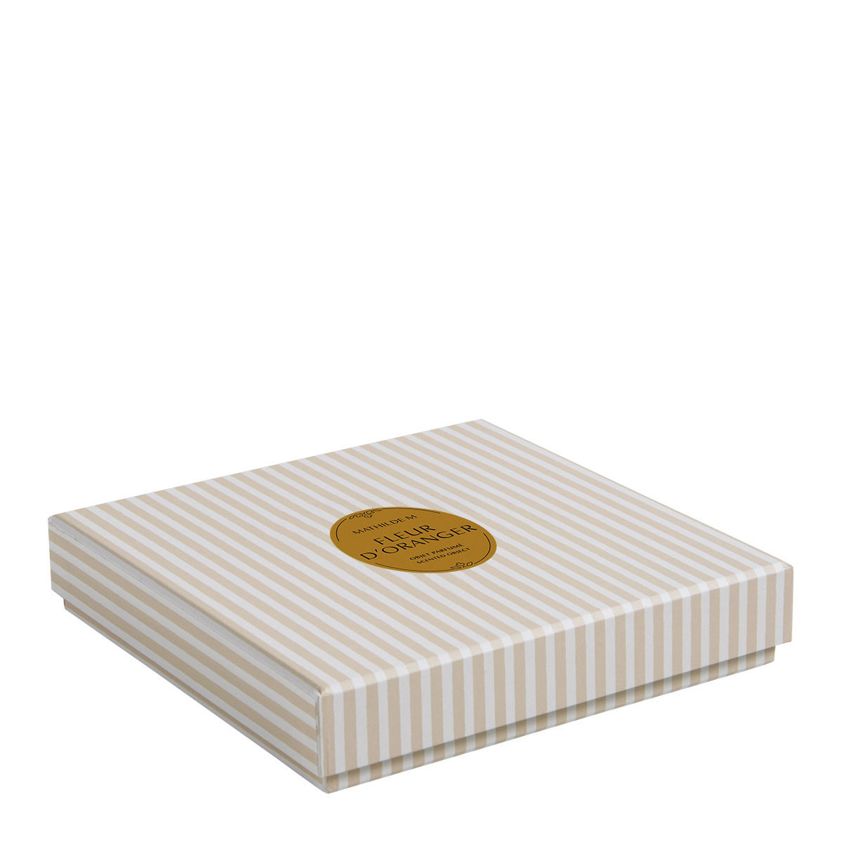 Emblemáticas de la marca, las decoraciones de yeso Mathilde M están delicadamente perfumadas y realizadas a mano en nuestros talleres según métodos artesanales por nuestra escultora ornamentista.