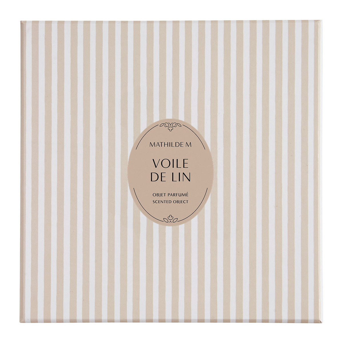 Voile de Lin, el recuerdo de las notas de ropa limpia escapadas de un hermoso armario antiguo... Una fragancia envolvente con notas empolvadas de rosa y violeta que se funden en una cama de almizcle blanco bordeada de flores de lino.