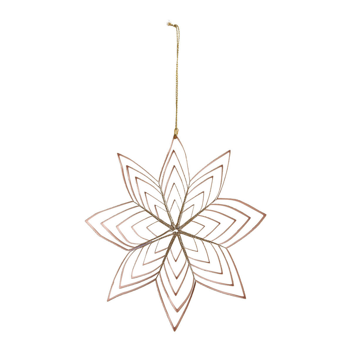 Déjese seducir por la delicadeza y el refinamiento de esta elegante flor de papel rosa y dorado. Colgada en el árbol de Navidad, en el pomo de una puerta o en una ventana, aportará un toque de poesía y magia a su decoración navideña. Combínela con otras formas y colores para crear el ambiente navideño que más le guste.nnColección Edición Limitada Fiestas EncantadasnColgar un ángel perfumado, encender una vela con el suave aroma de las agujas de pino, descubrir la última sorpresa del Calendario de Adviento... La Navidad está cerca y se anuncia sublime con Mathilde M.nnInformación adicionalnComposición: papelnDimensiones: 19 x 21 x 1,5 cm