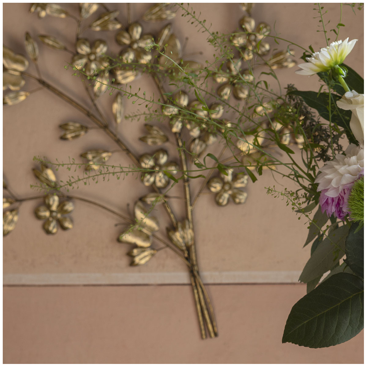 Añade un toque romántico y bucólico a tu interior con esta elegante decoración dorada de Ramaje, adornada con flores y mariposas.
