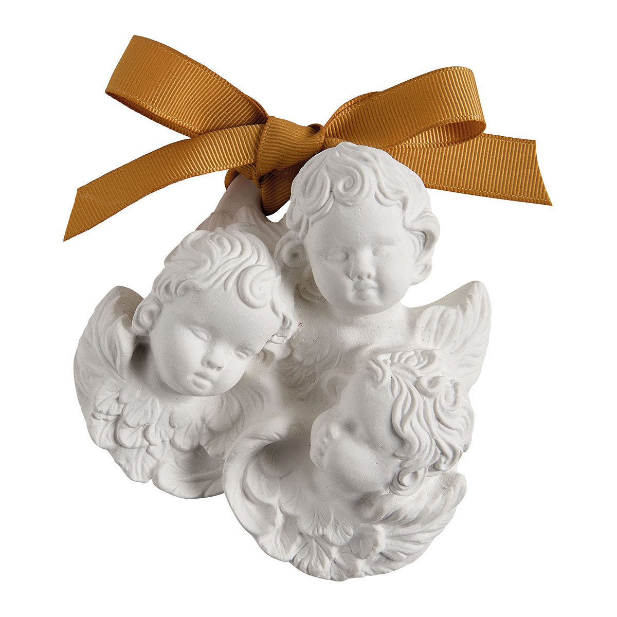 Completamente hecho a mano, este trío de angelitos de yeso, con rostros tiernos y benevolentes, perfumará delicadamente y durante mucho tiempo todos los pequeños espacios de su hogar, como armarios, cajones o equipajes. Colocado en un platillo sobre una mesa, se transforma en un verdadero objeto decorativo precioso.