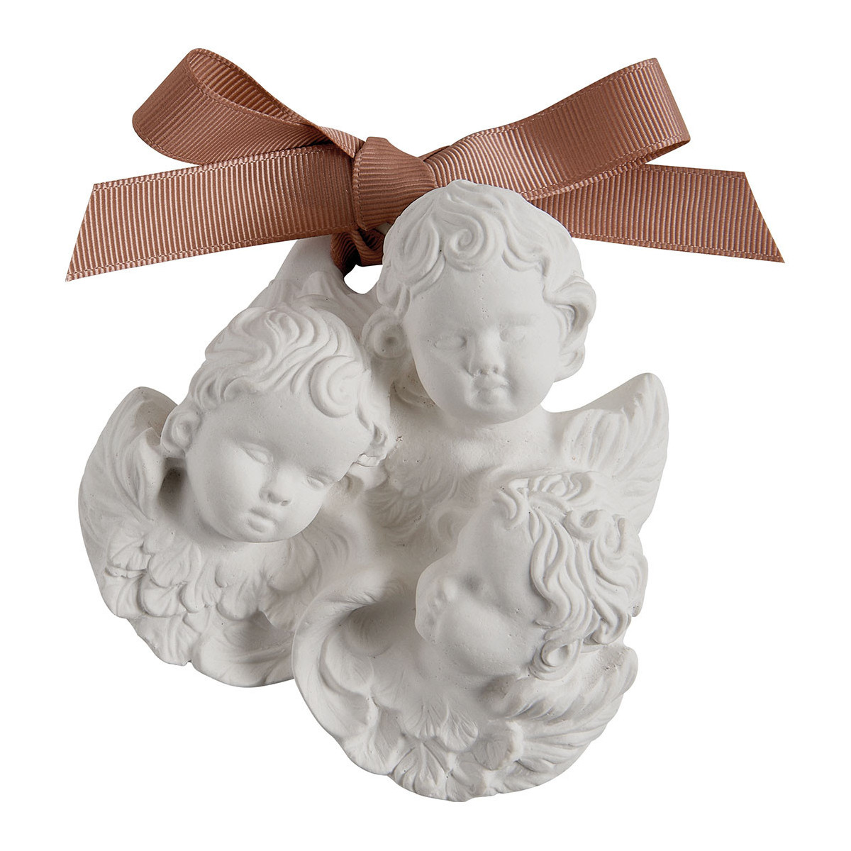 Completamente hecho a mano, este trío de Angelitos en yeso, con rostros tiernos y benevolentes, perfumará delicadamente y por mucho tiempo todos los pequeños espacios de su hogar como armarios, cajones o equipaje. Colocado en un platillo sobre una mesa, se transforma en un verdadero objeto decorativo precioso.