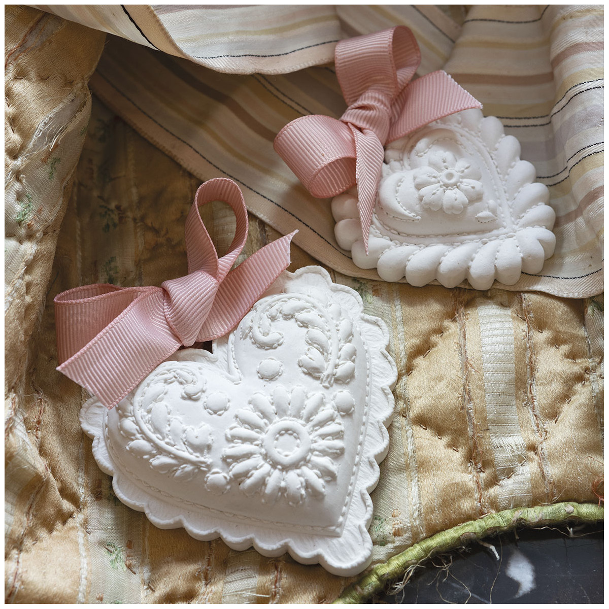 Completamente hecho a mano, esta decoración de yeso representa un hermoso corazón con costuras inspiradas en el boutis provenzal. Perfuma delicadamente y por mucho tiempo todos los pequeños espacios de su hogar como armarios, cajones o equipaje.