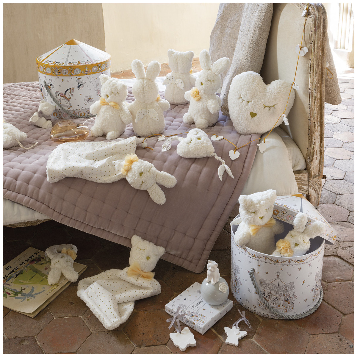 Este adorable compañero, un objeto decorativo minuciosamente tallado a mano, está perfumado con Nounours, una fragancia fresca y floral con notas relajantes de jazmín y flor de azahar, para un delicioso regreso a la infancia. ¡Una hermosa idea de regalo para la habitación del bebé!