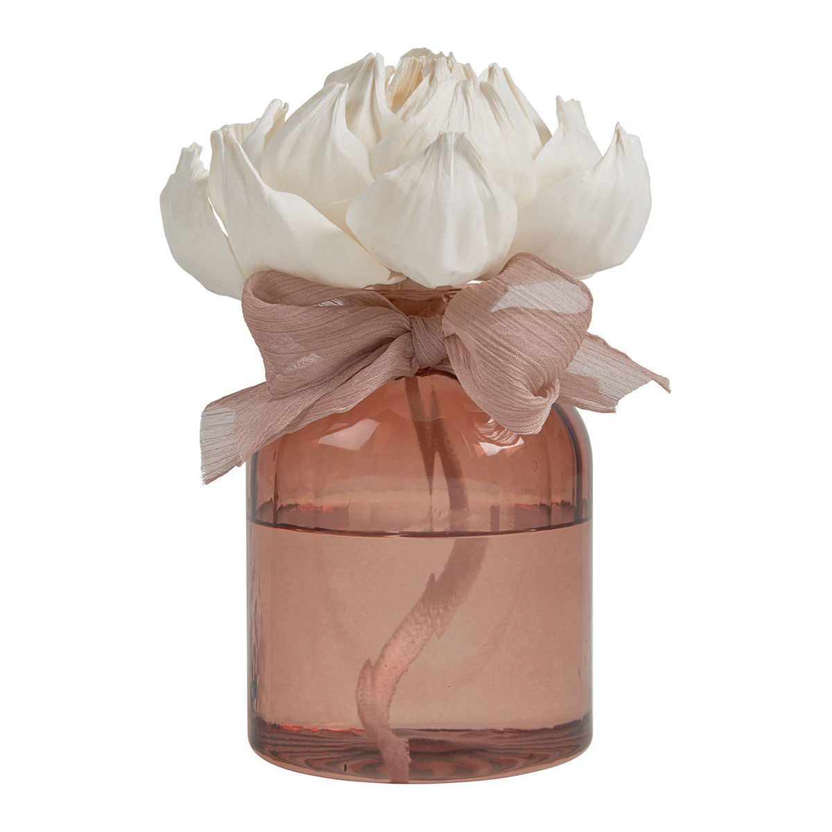 Déjese tentar por la elegancia del difusor de fragancia ambiental Soliflore Flora. Adornado con un bonito lazo, perfuma de forma duradera su interior gracias a la flor de madera de sola que reposa en su delicado frasco de vidrio.