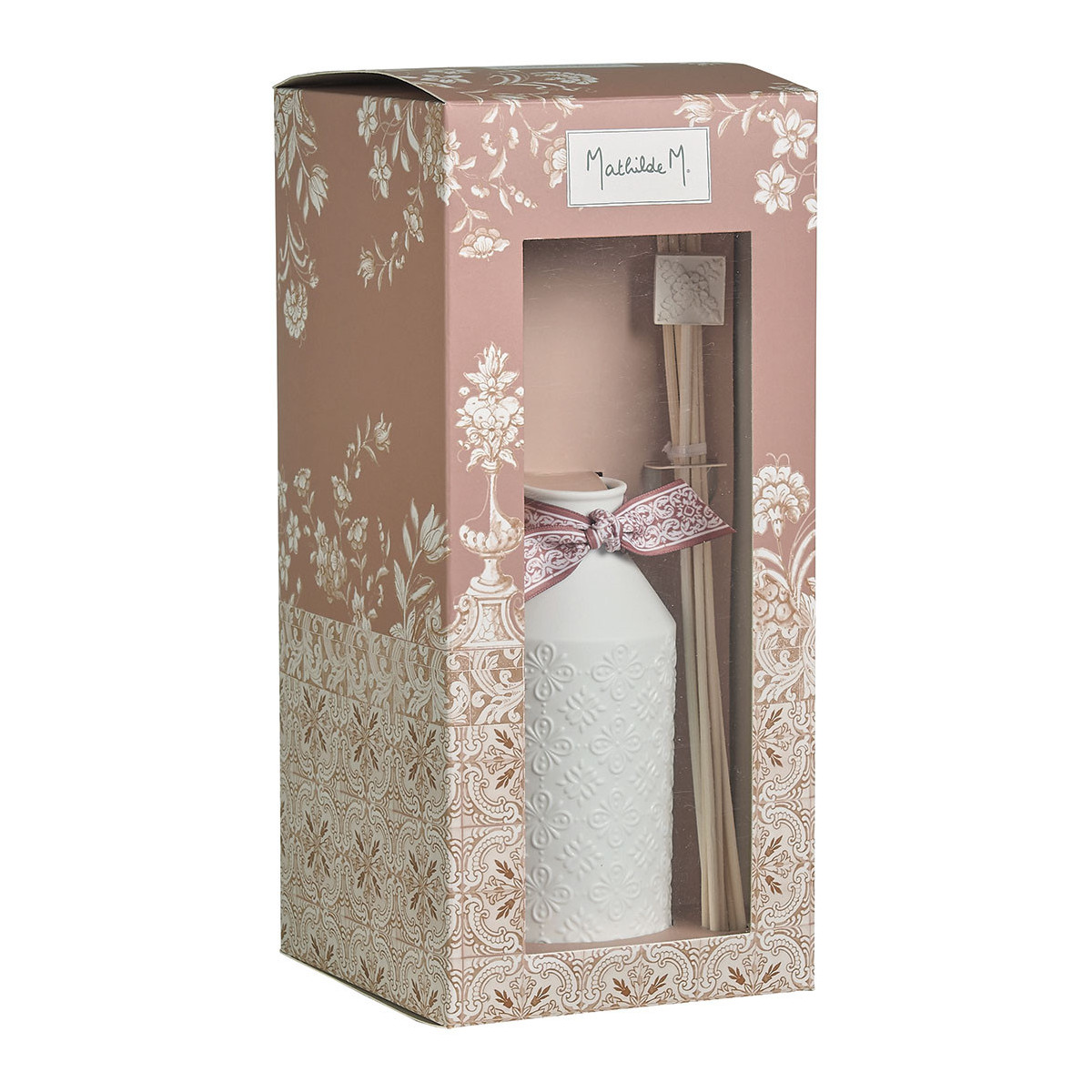 Descubra el difusor de fragancia para ambiente Escale à Sintra y sus elegantes decoraciones inspiradas en los azulejos portugueses. Perfuma continuamente el interior con Rose Élixir, una fragancia voluptuosa y cautivadora, fusión de la rosa, reina de las flores, y las notas empolvadas de la violeta, sobre un lecho de almizcles blancos.