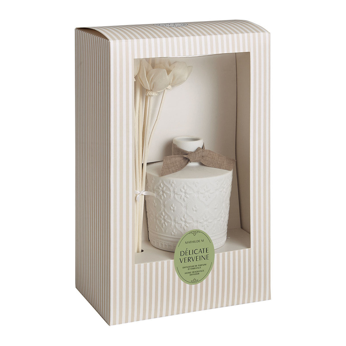 Déjese seducir por el encanto y la poesía del difusor de perfume ambiental Petite Indienne que perfumará su interior de forma duradera. En relieve, delicados motivos inspirados en las telas indias adornan el frasco de bizcocho de porcelana.