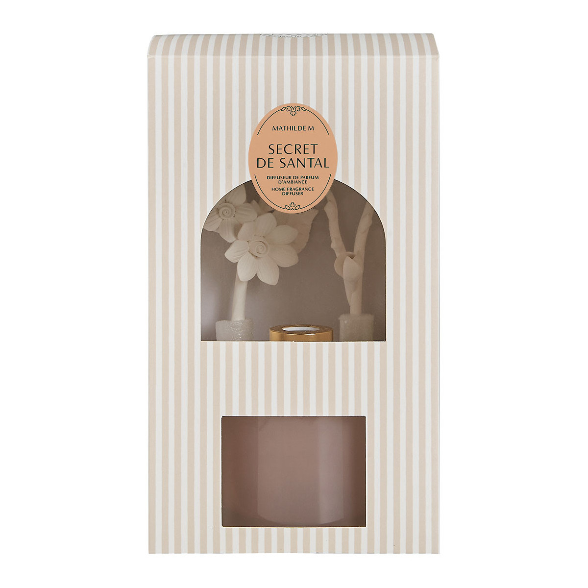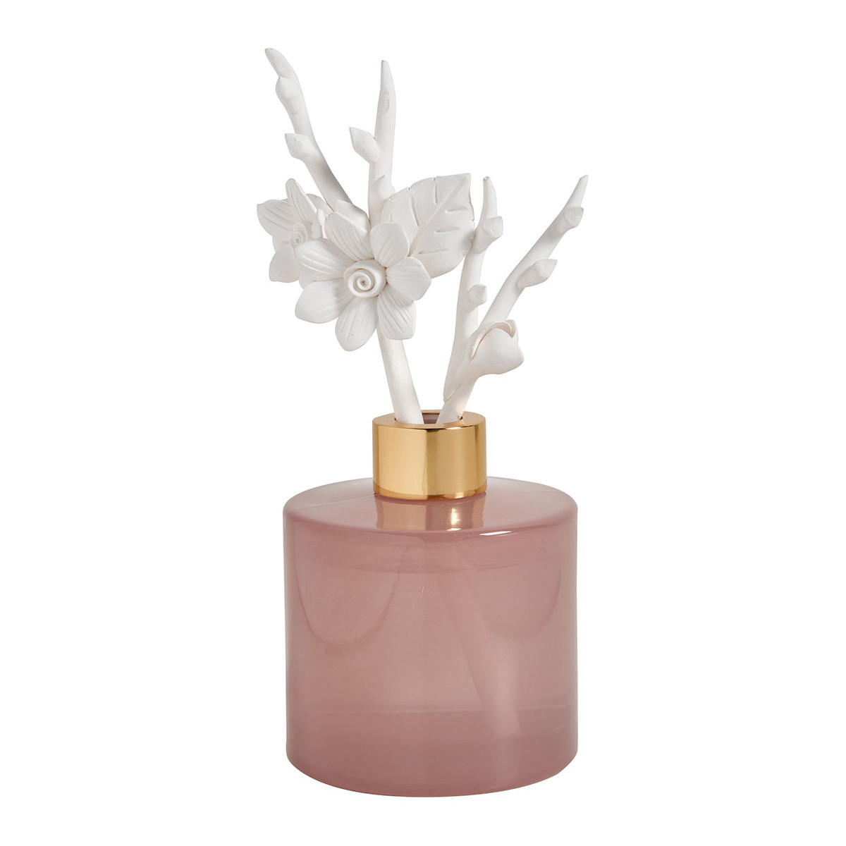 Descubra el elegante difusor de perfume ambiental Destello Floral que perfumará su interior de forma duradera. Realizadas a mano, dos delicadas ramas florales de bizcocho de porcelana reposan en su frasco de cristal rosado. Una vez colocadas en el frasco, se impregnan de perfume por capilaridad para difundirlo gradualmente en el aire ambiente durante varias semanas. La porcelana se tiñe al contacto con el perfume.
