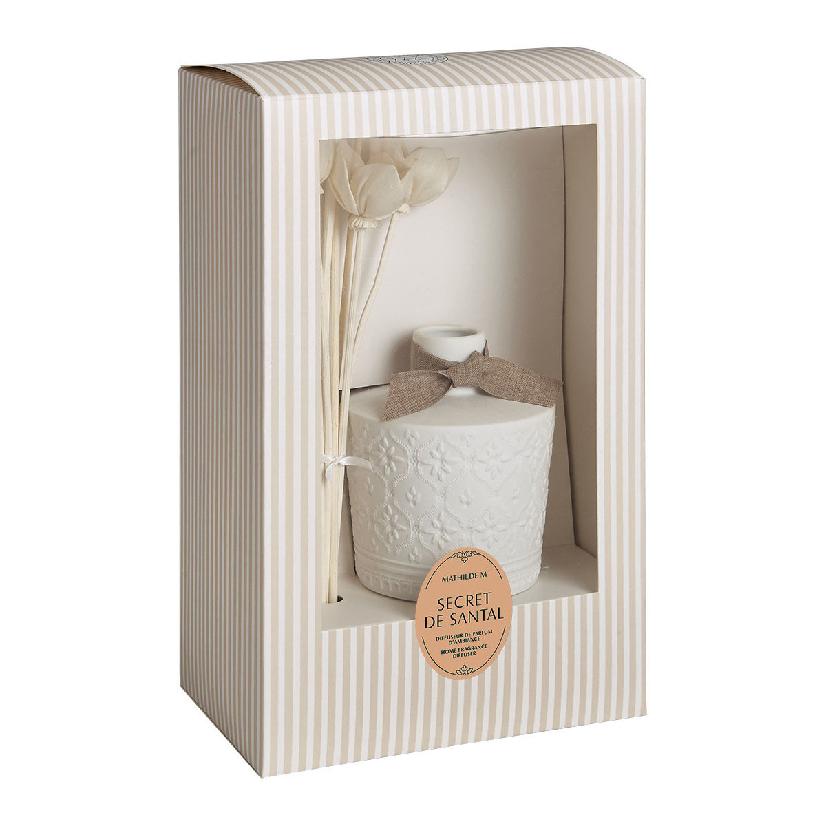 Déjese seducir por el encanto y la poesía del difusor de perfume ambiental Petite Indienne que perfumará su interior de forma duradera. En relieve, delicados motivos inspirados en las telas indias decoran el frasco de bizcocho de porcelana.