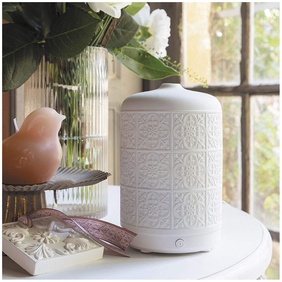 Fácil de usar, silencioso y seguro, el difusor eléctrico Escala en Sintra perfuma intensamente y de forma continua los espacios pequeños y grandes mientras emite una suave luz, aportando calma y relajación. Sus elegantes decoraciones están inspiradas en los famosos azulejos, emblemáticos azulejos de cerámica portugueses.