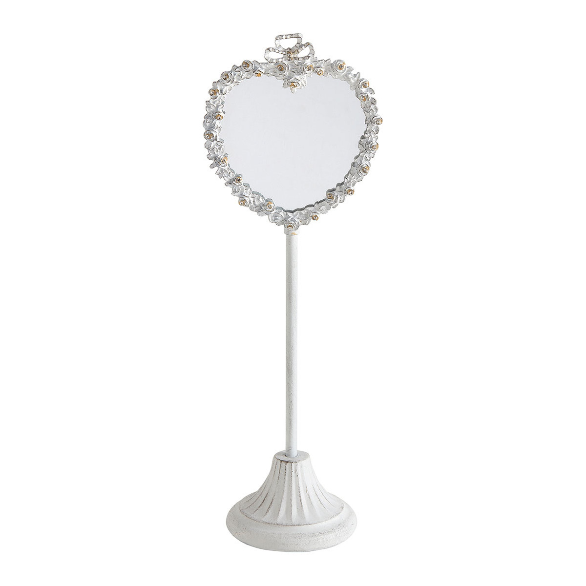 Aporte un toque de romanticismo a su interior con este hermoso espejo de pie con acabado blanqueado en forma de corazón.