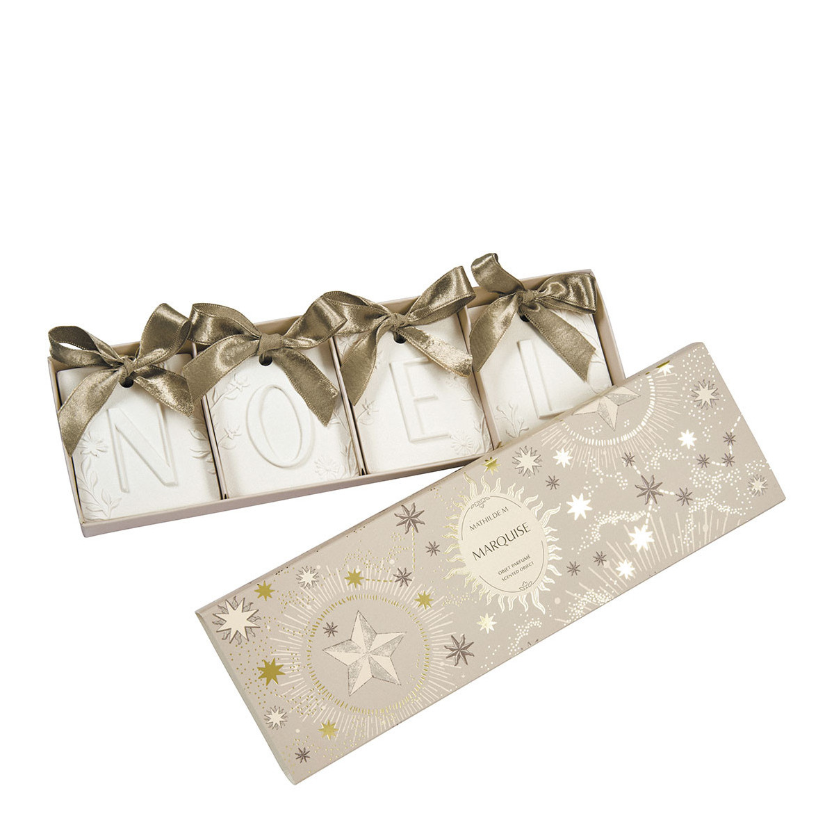 Emblemáticas de la marca, las decoraciones de yeso Mathilde M están delicadamente perfumadas y realizadas a mano en nuestros talleres según métodos artesanales por nuestra escultora ornamentista.