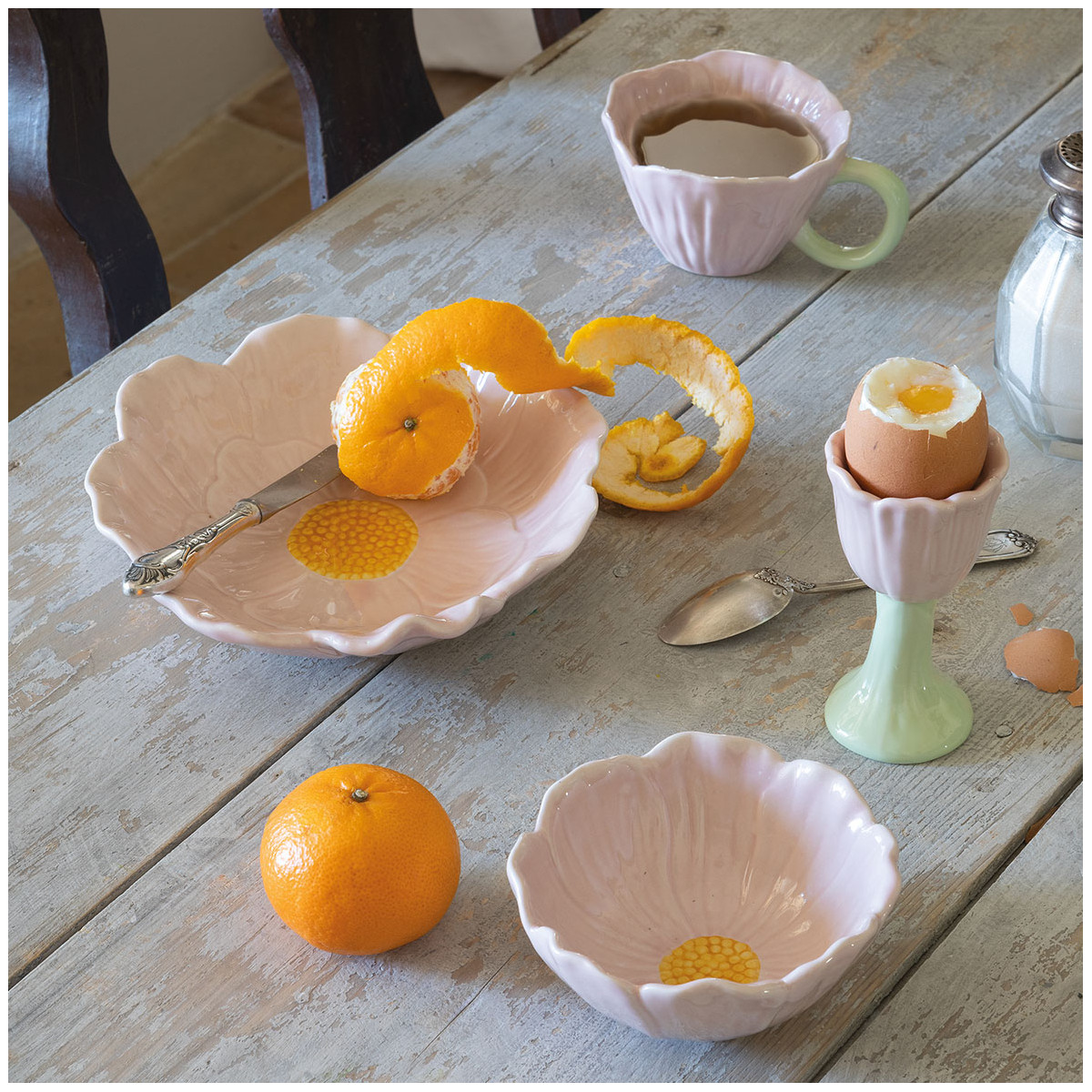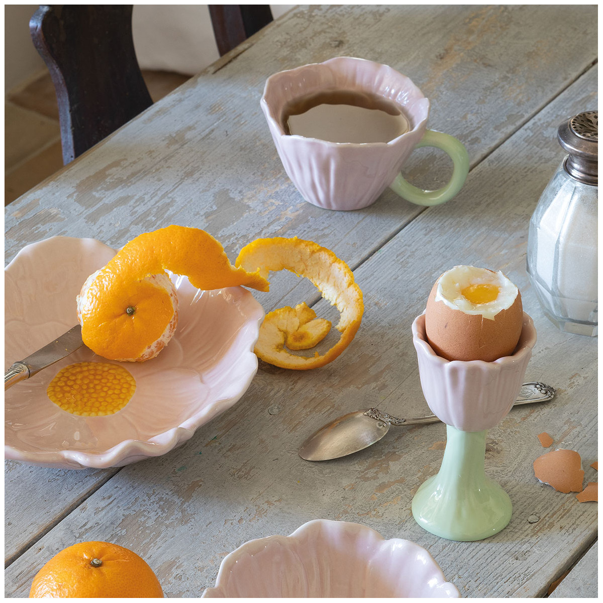 Añada un toque de poesía a su mesa con este encantador huevero con pie Tulipán de Mathilde M. Apreciará su diseño en forma de flor y sus suaves tonos de rosa y amarillo. Se integrará perfectamente en una decoración de mesa con estilo primaveral.nnInformación adicionalnComposición: gres de color rosa claronDimensiones: ø 6 x 10,8 cm
