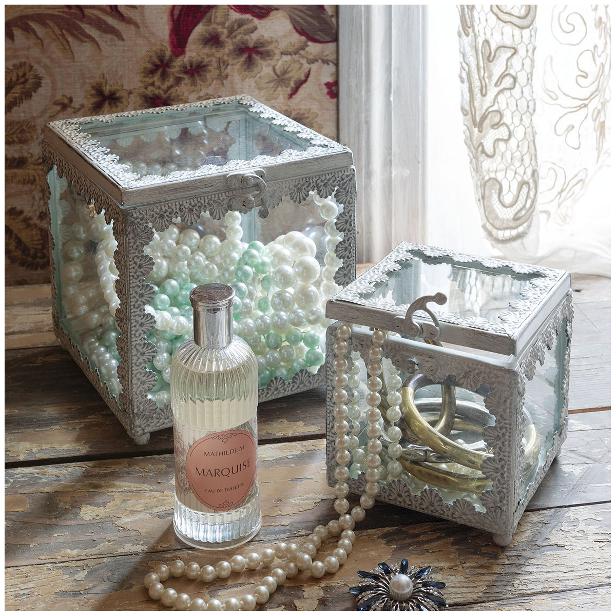 Regale a sus tesoros un estuche refinado con este elegante joyero. Aportará un toque precioso a su decoración. Tanto práctico como decorativo, realzará su tocador o su mesita de noche.nnInformación adicionalnComposición: metal con acabado blanqueado y vidrionDimensiones: 15,5 x 15,5 x 15,5 cmnnTambién disponible en modelo pequeño
