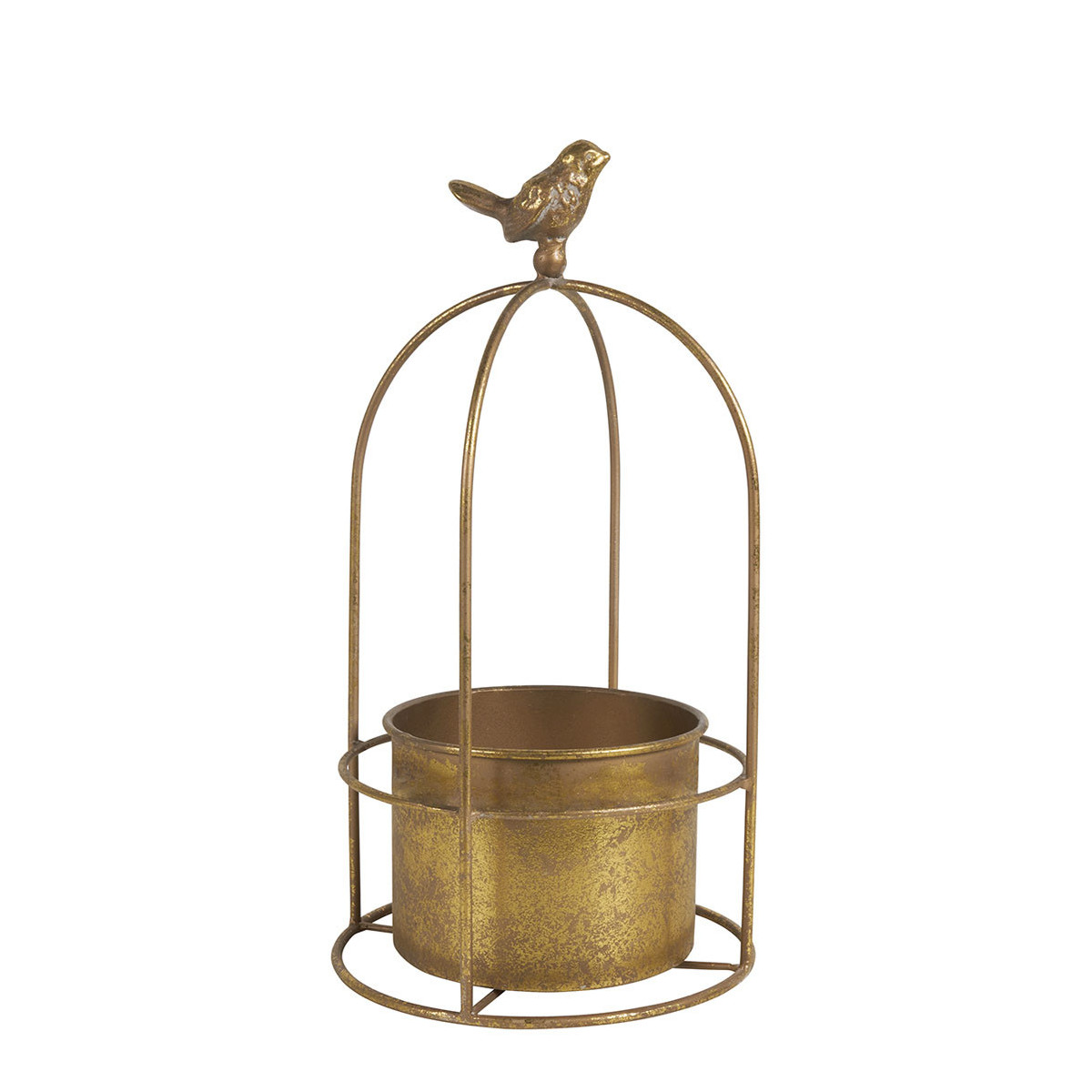 Maceta Jaula de pájaro de metal dorado - Modelo pequeño - ø 14 x 29 cm