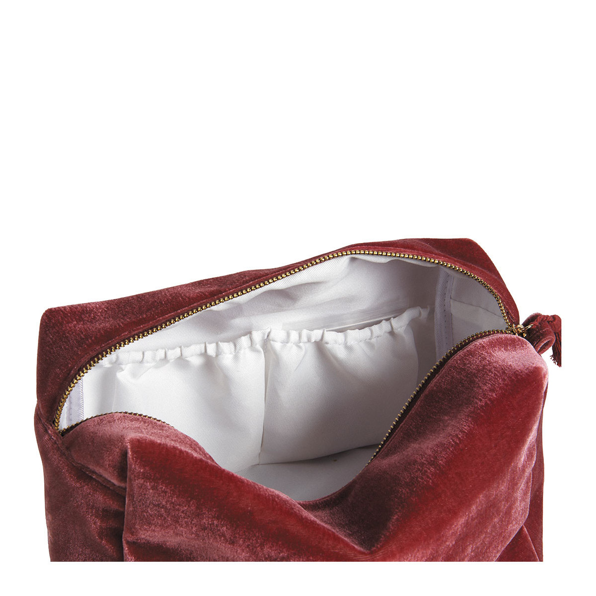 Práctico y femenino, el neceser rectangular de terciopelo tornasolado rosa te seducirá por su suavidad y elegancia. Podrás guardar fácilmente todos tus accesorios de belleza y llevarlo en tu equipaje. ¡Un elemento indispensable para tus próximos viajes!