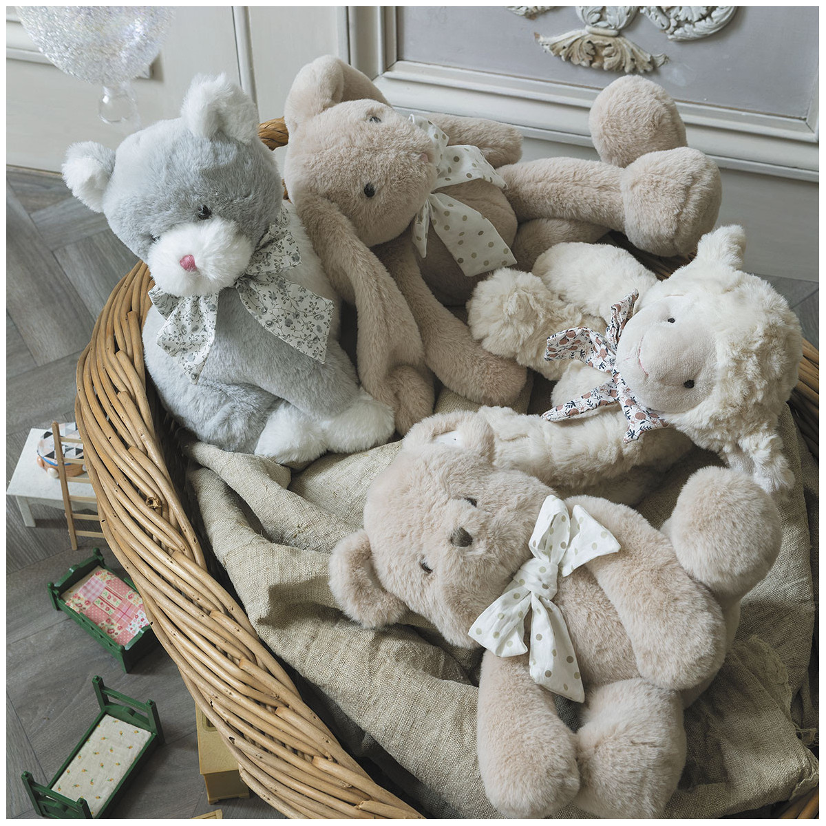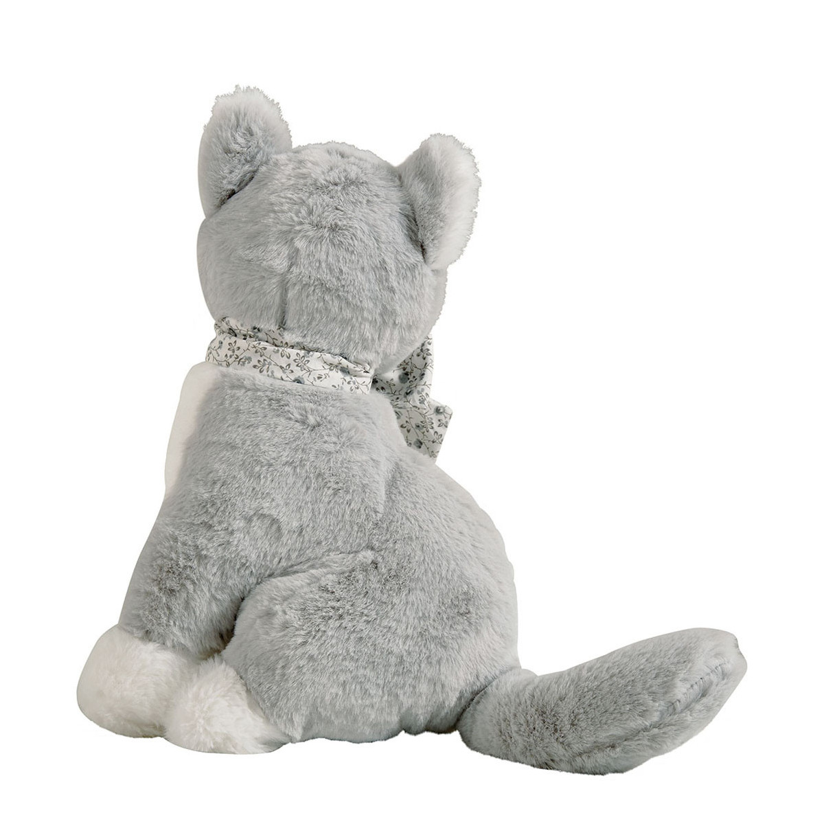 Déjese seducir por este irresistible compañero para bebé... El peluche de Gato gris es muy suave y podrá acompañar a su pequeño desde su nacimiento. Vestido con su elegante lazo floral, aportará un toque de suavidad y delicadeza a la decoración de la habitación.