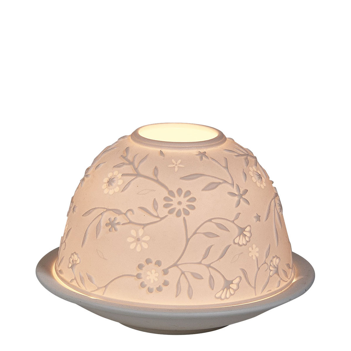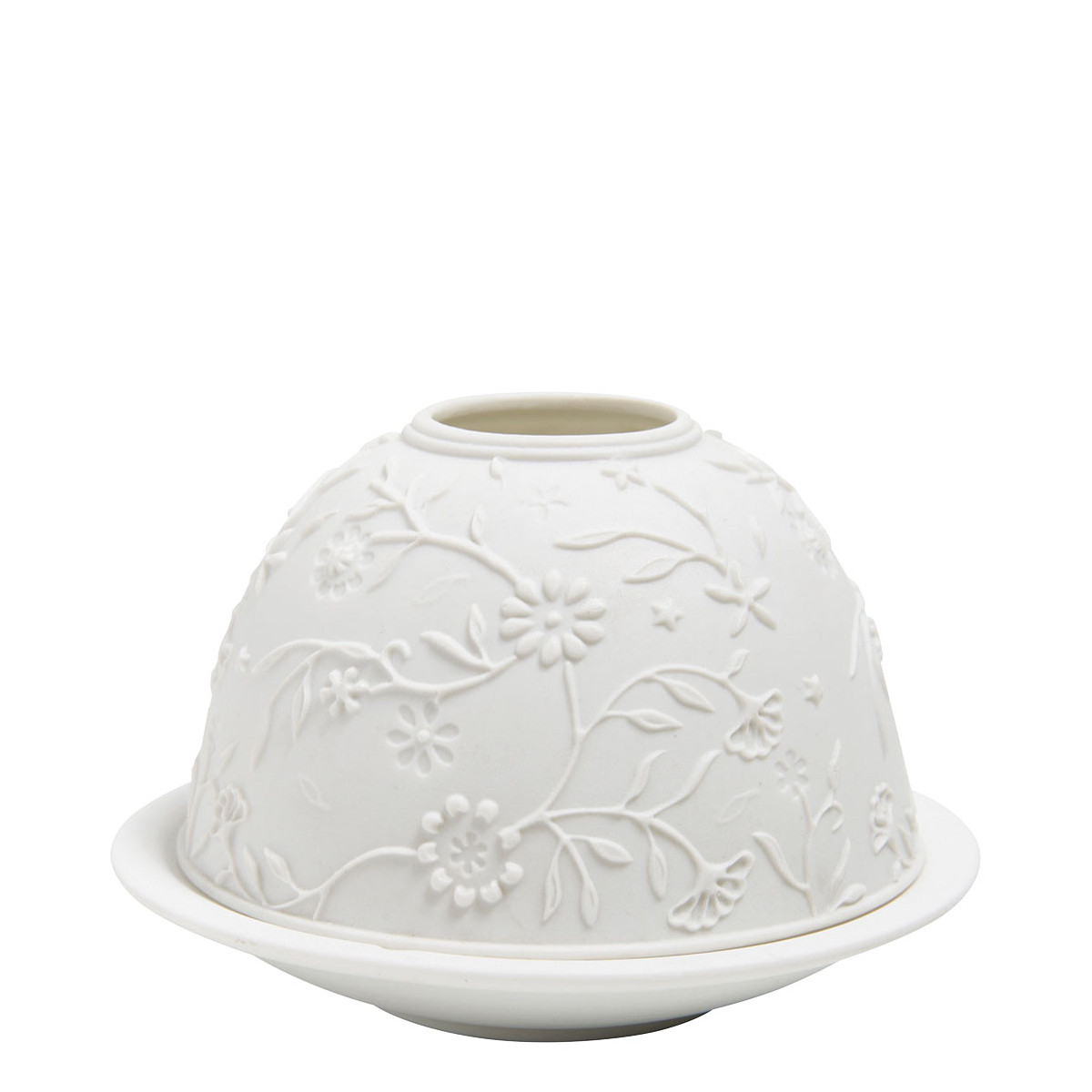 Déjese cautivar por este portavelas de litofanía Margarita salpicado de encantadoras y delicadas florecillas. Aportará un toque de romanticismo a su decoración. Una vez encendida la vela, le seducirá con su elegante juego de sombras y la suave luz que difundirá.