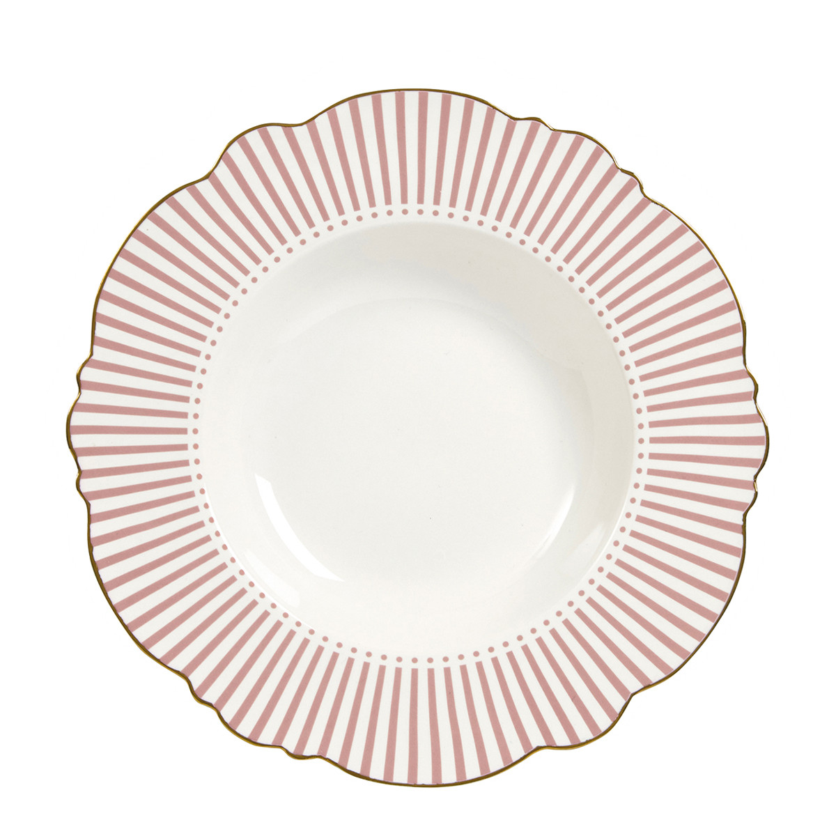 Este plato hondo de porcelana le seducirá por sus líneas elegantes y quedará sublime combinado con la línea Madame de Récamier en tono gris oscuro, para una mesa del más bello efecto.