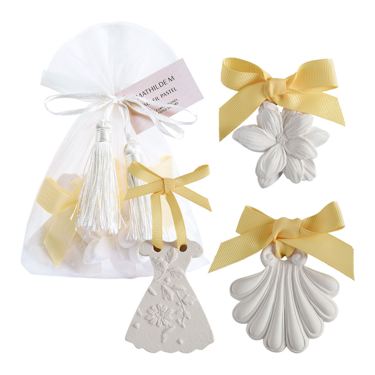 3 decoraciones de yeso (Concha, Jazmín y Vestido), fragancia Soleil Pastel