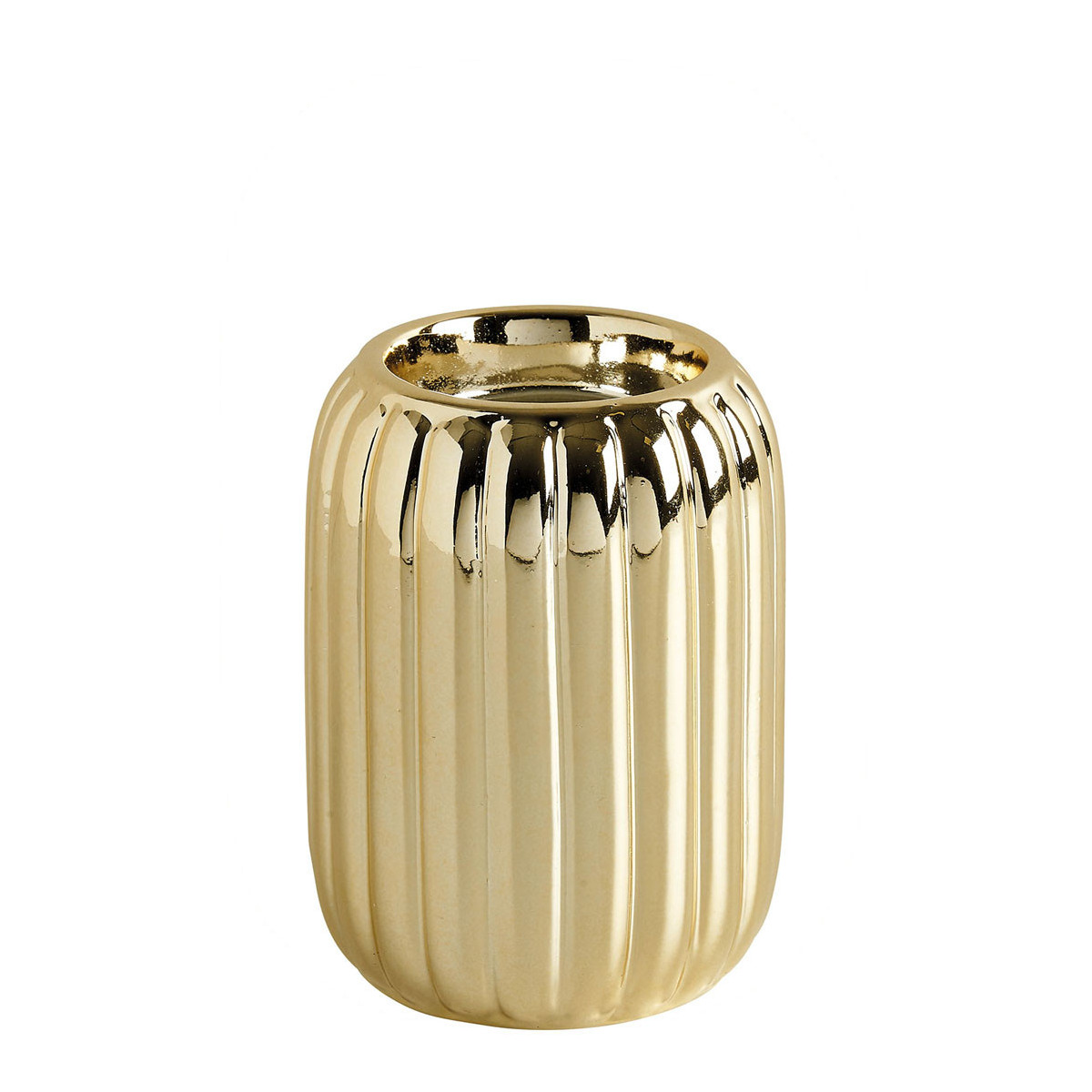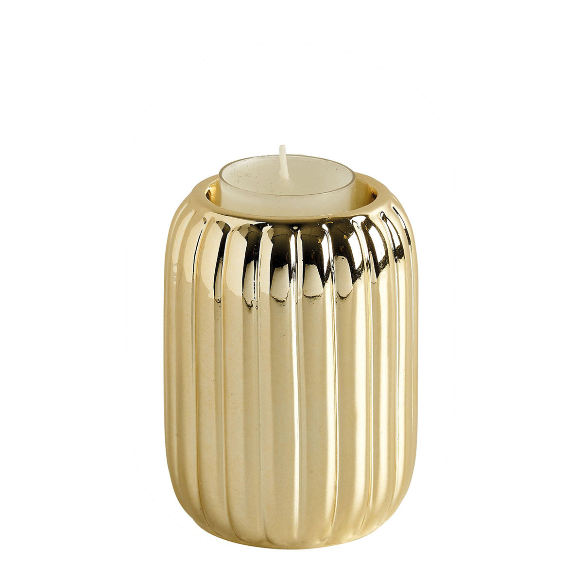 Portavelas acanalado dorado de cerámica - Modelo grande