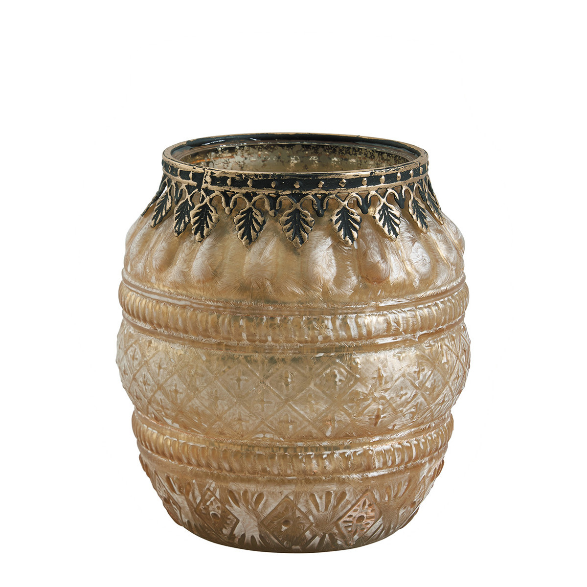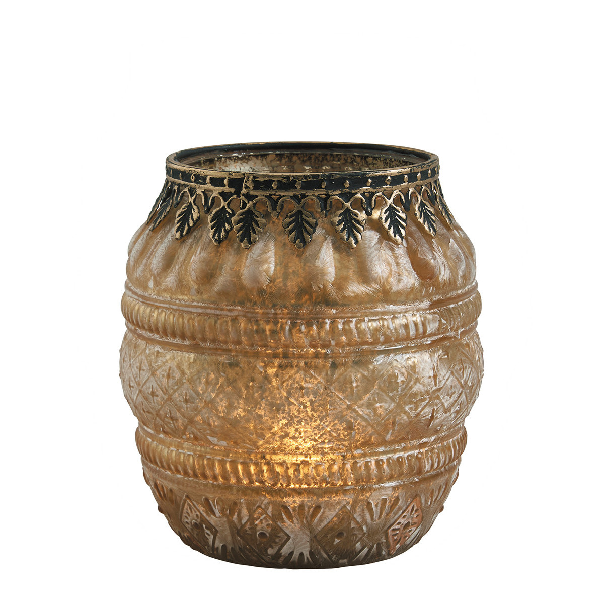 Elegante y detallado, este portavelas redondo Jardin d'Ailleurs dorado escarchado aportará un toque de originalidad a su decoración.