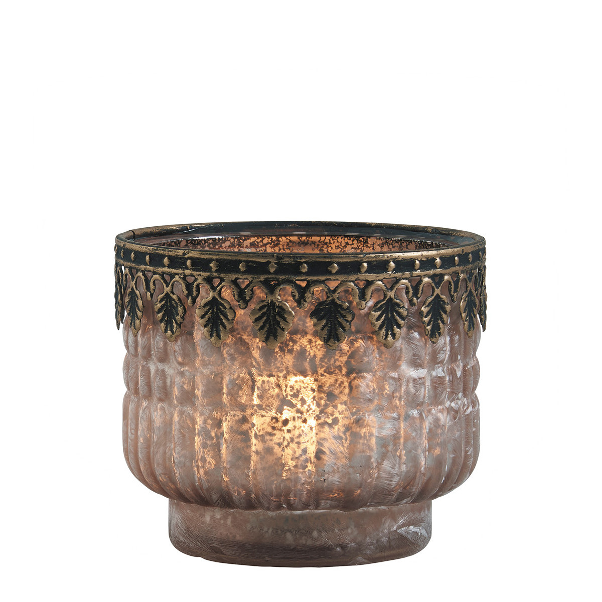 Con elegancia y detalles, este portavelas con pie Jardín de Otro Lugar en rosa escarchado aportará un toque de originalidad a tu decoración.