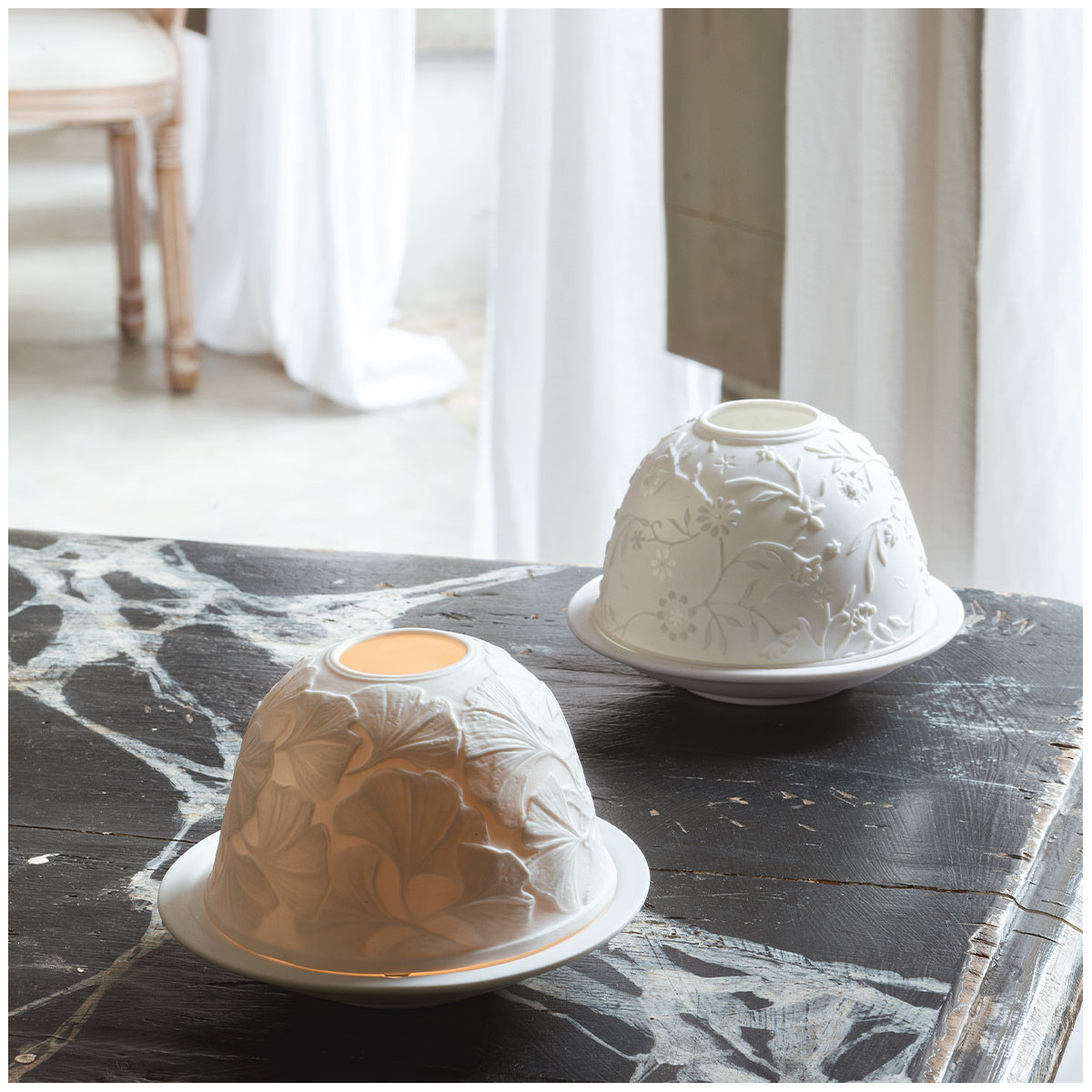 Portavelas litofanía Follaje en bizcocho de porcelana