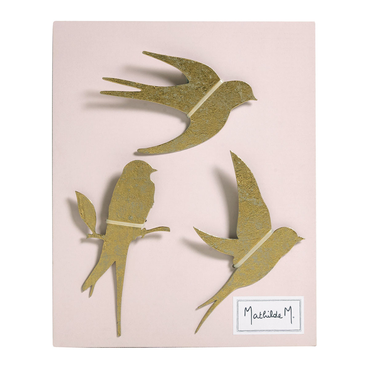 Sus paredes se adornan con un toque de elegancia y ligereza gracias a este set de 3 Golondrinas de metal con acabado en latón. En la sala de estar, un pasillo o un dormitorio, podrá disponerlas juntas o por separado en su pared.
