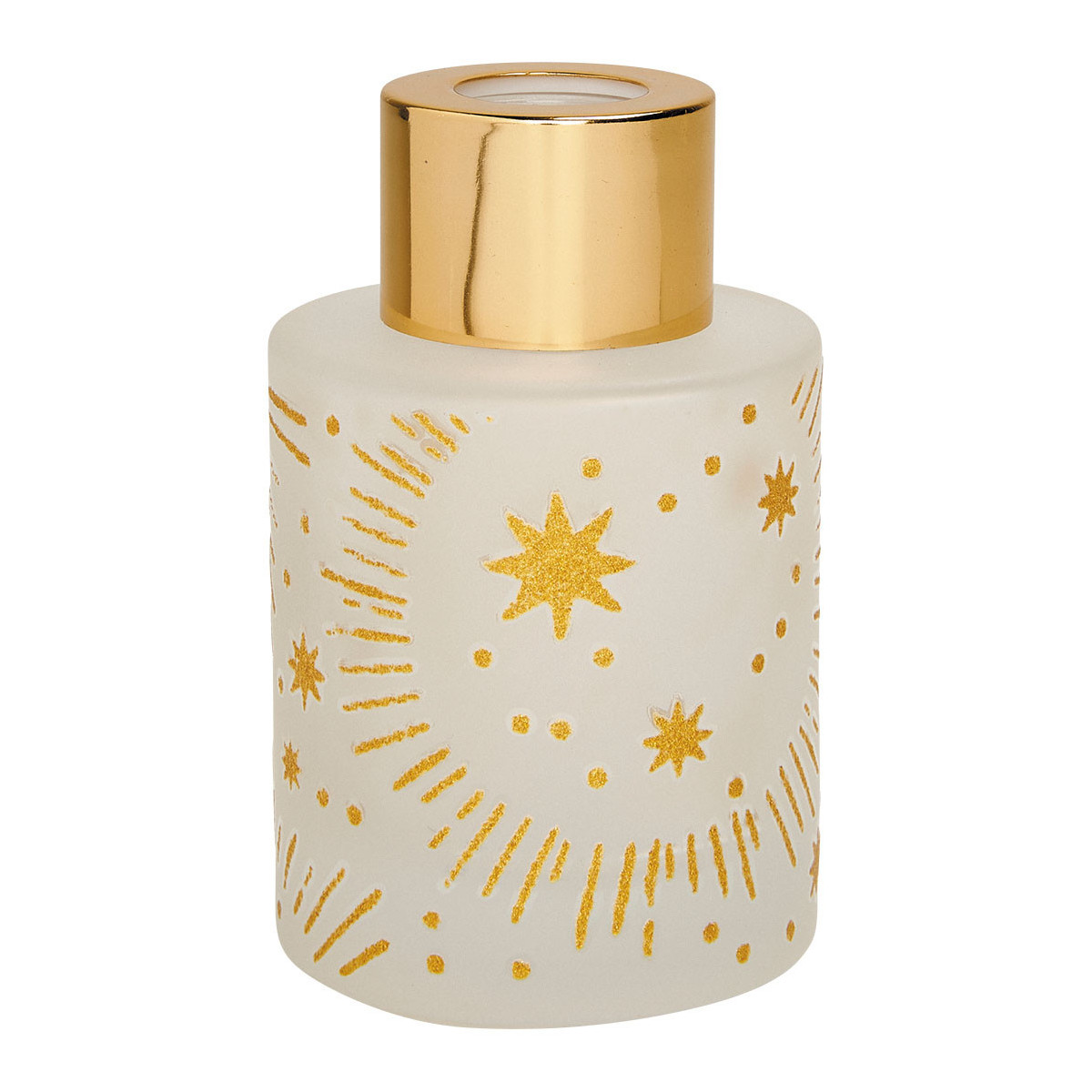 Descubra este hermoso set Fête Céleste. Contiene un difusor de fragancia ambiental y una decoración de yeso perfumado hecha enteramente a mano, inspirada en la belleza de los astros. Delicadamente dispuestas en el frasco, las varillas de ratán blanqueado se impregnan de perfume por capilaridad para difundirlo gradualmente en el aire ambiente. Este difusor perfuma durante varias semanas una habitación de pequeño tamaño.