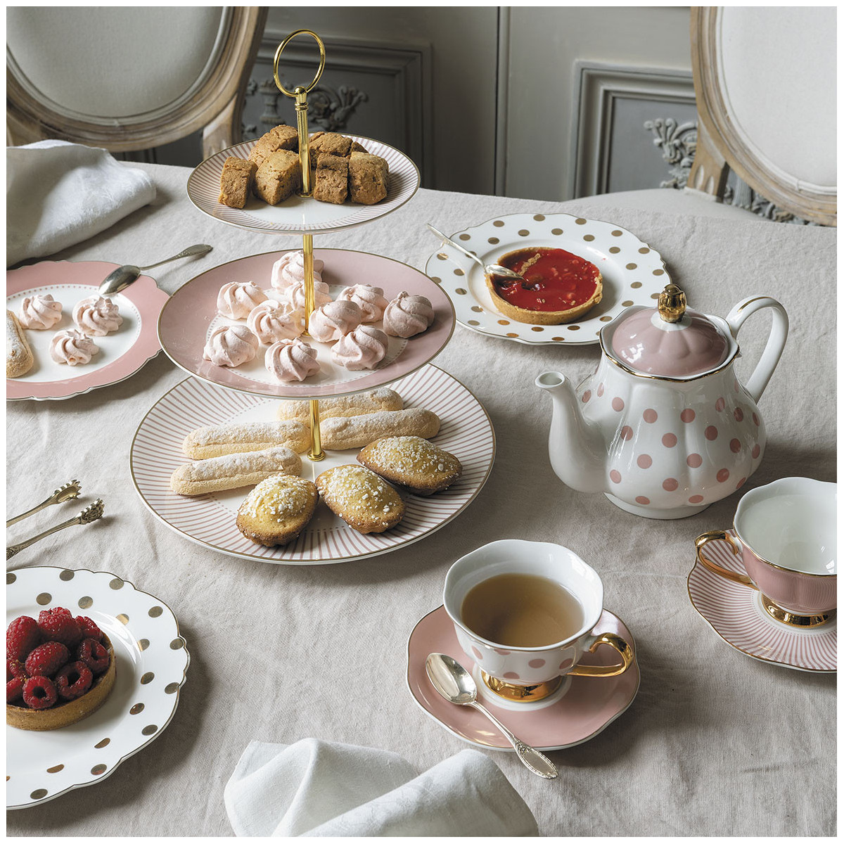 Déjese seducir por el soporte de dulces gris de la emblemática línea de arte de mesa Madame de Récamier. Sea cual sea la ocasión, será perfecto para presentar sus pasteles dulces o salados con refinamiento, gracias a sus tres elegantes bandejas.