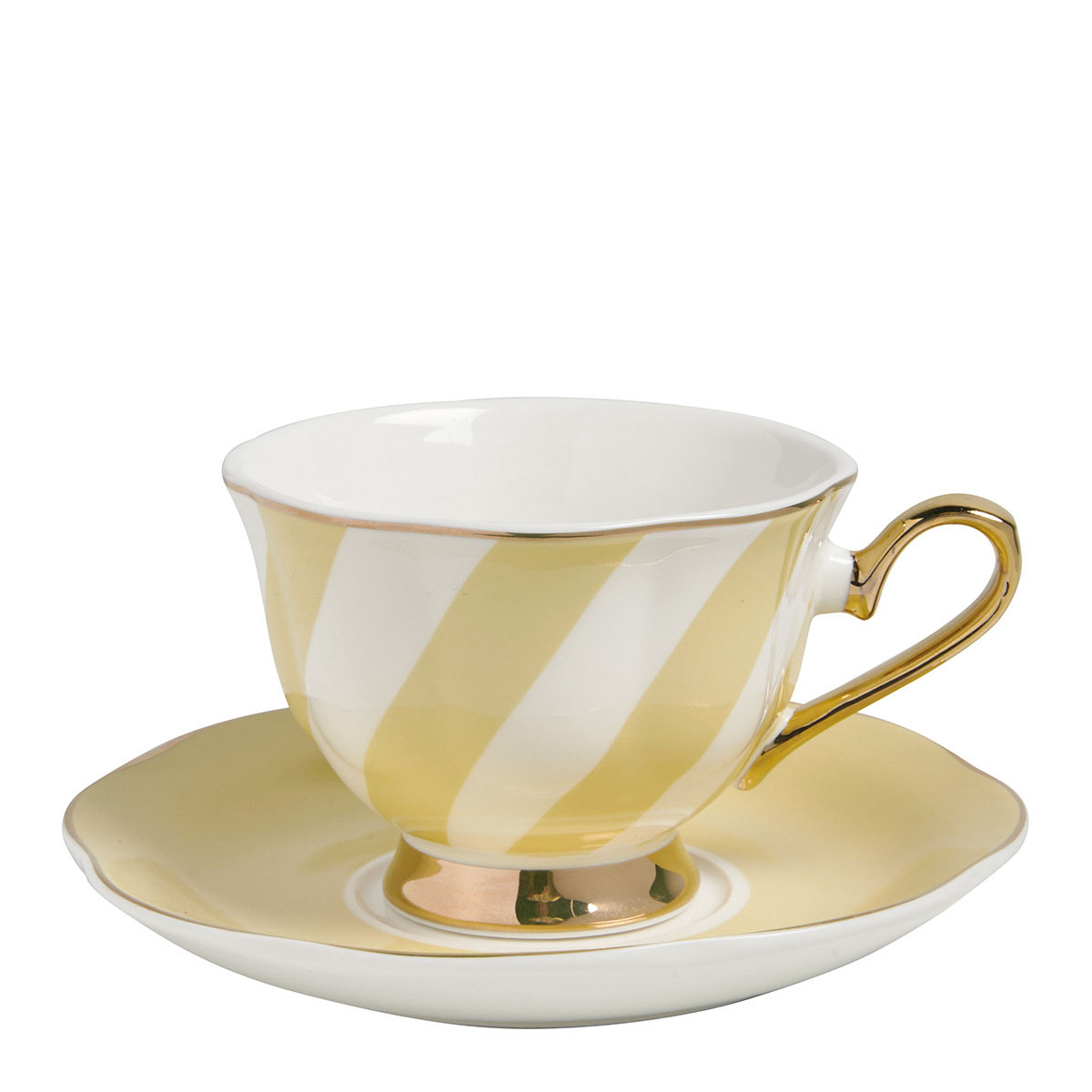 Taza de té y platillo Madame de Récamier rayas pastel - Amarillo