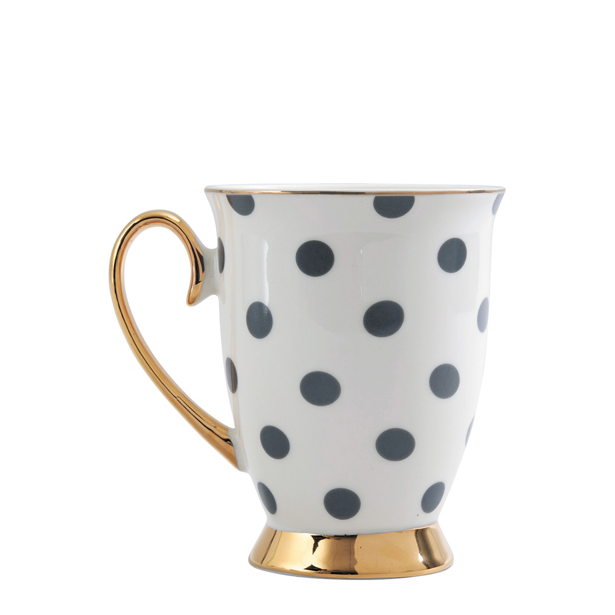 La emblemática línea de artículos de mesa Madame de Récamier se enriquece con nuevos productos de elegantes líneas clásicas, y presenta una nueva decoración de lunares grises que se puede combinar a voluntad con las finas rayas de los productos existentes.