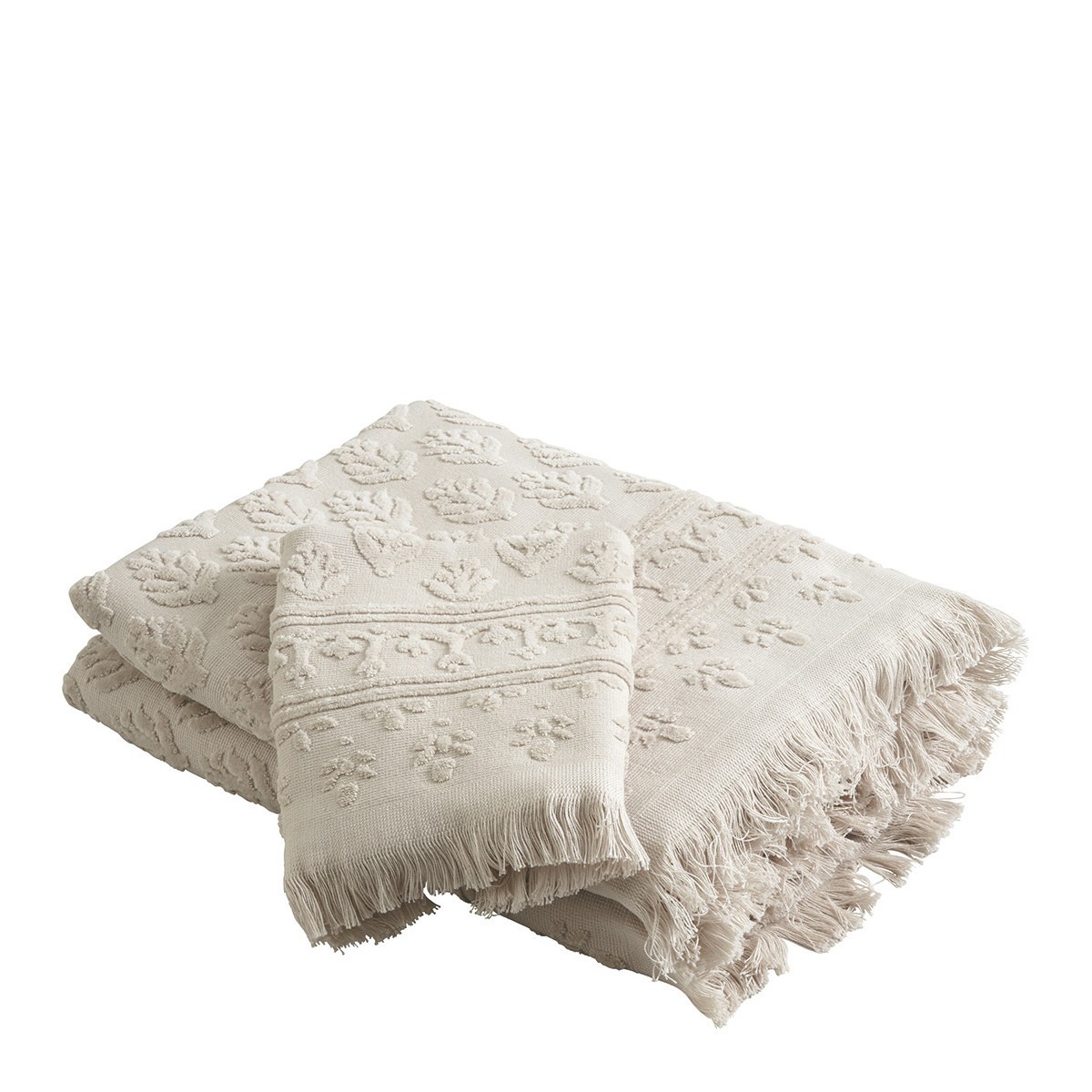 Envuélvase en suavidad con esta elegante toalla de baño Petite Indienne en color crudo con motivos florales de un estampado indio. Suave y ultra absorbente,...