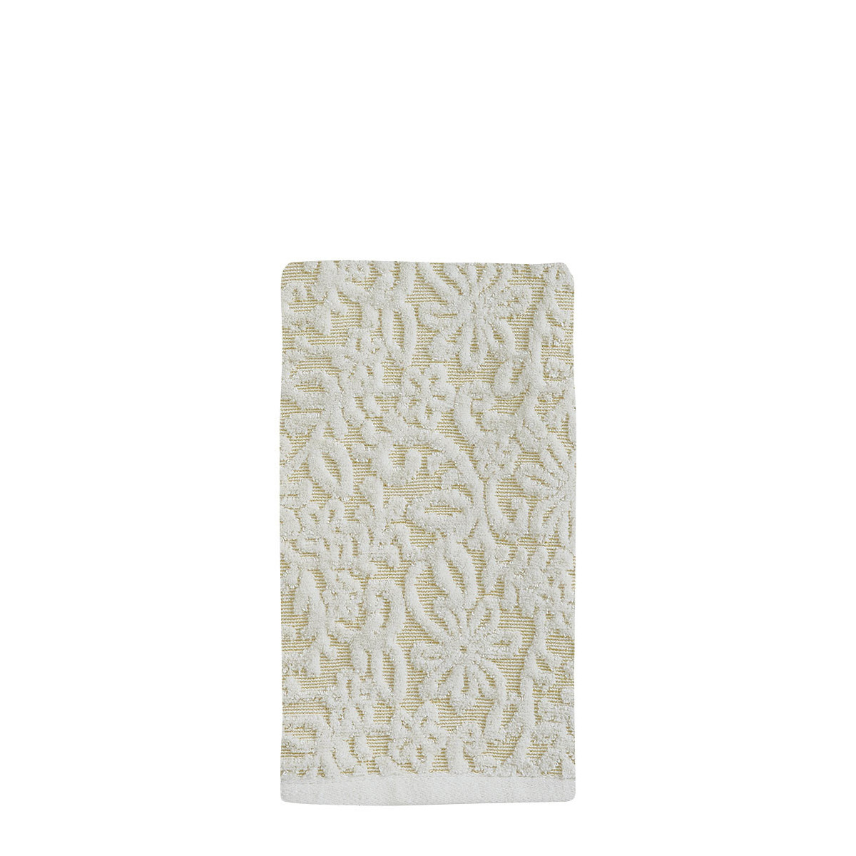 Déjese cautivar por el refinamiento de la toalla de invitados Hilos de Oro, cuyos elegantes motivos florales están sublimados por un delicado ribete dorado. Fabricada en algodón de calidad, envolverá su piel con suavidad gracias a su irresistible textura mullida y su generoso tamaño.