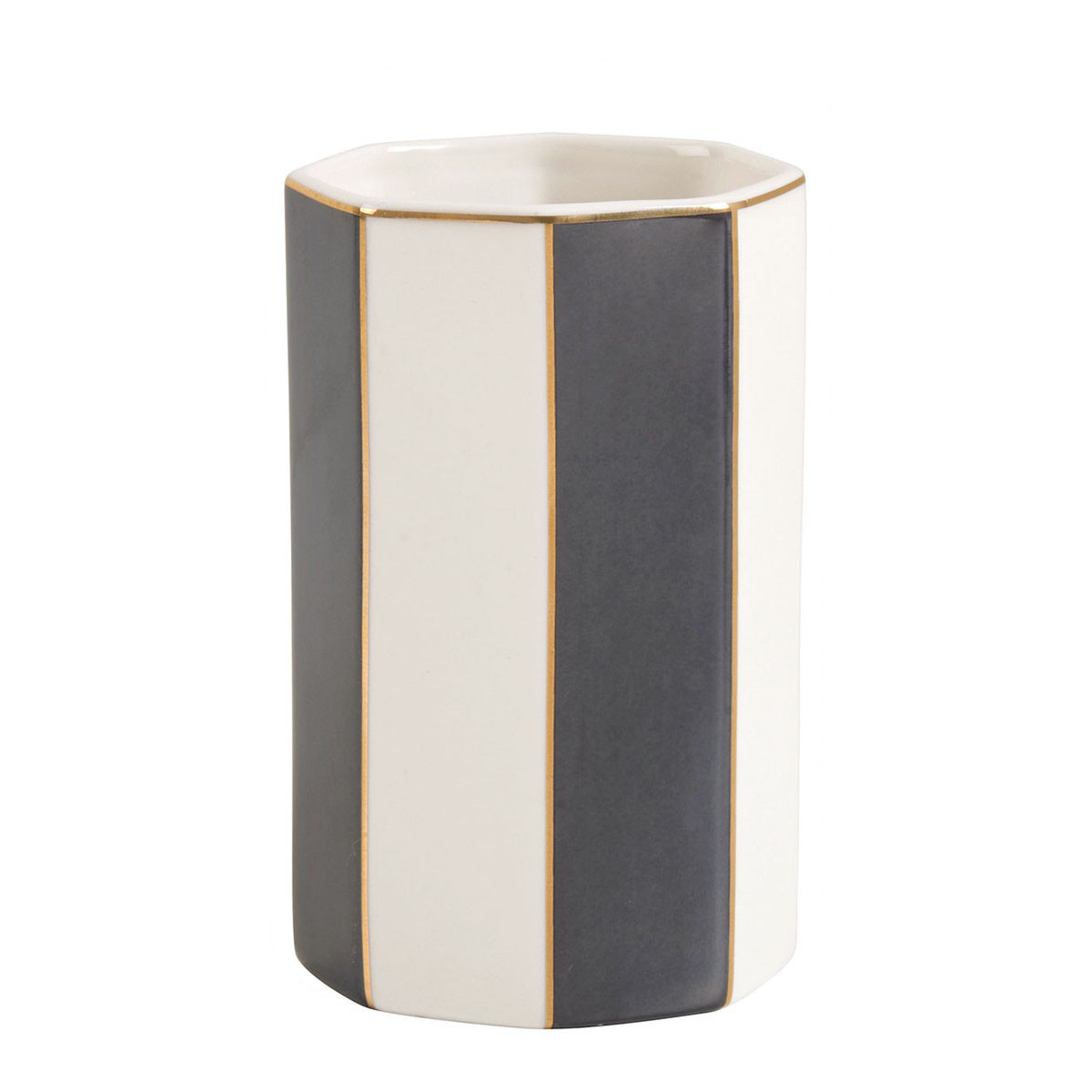 La emblemática línea Madame de Récamier ahora llega al baño con este vaso de elegantes líneas grises bordeadas por un sutil ribete dorado. Aportará un toque chic y refinado a la decoración de su interior.